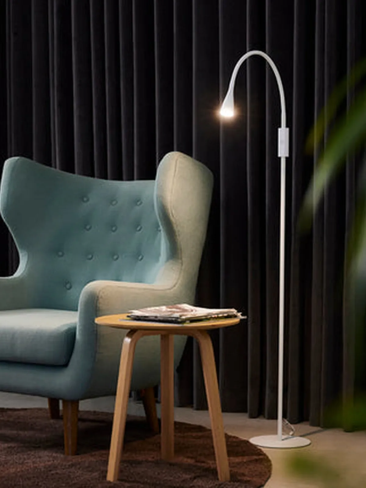 Twist er en fleksibel gulvlampe som passer perfekt som leselampe. Lampen kan dimmes i 3-steg og finnes i fargene hvit eller svart.