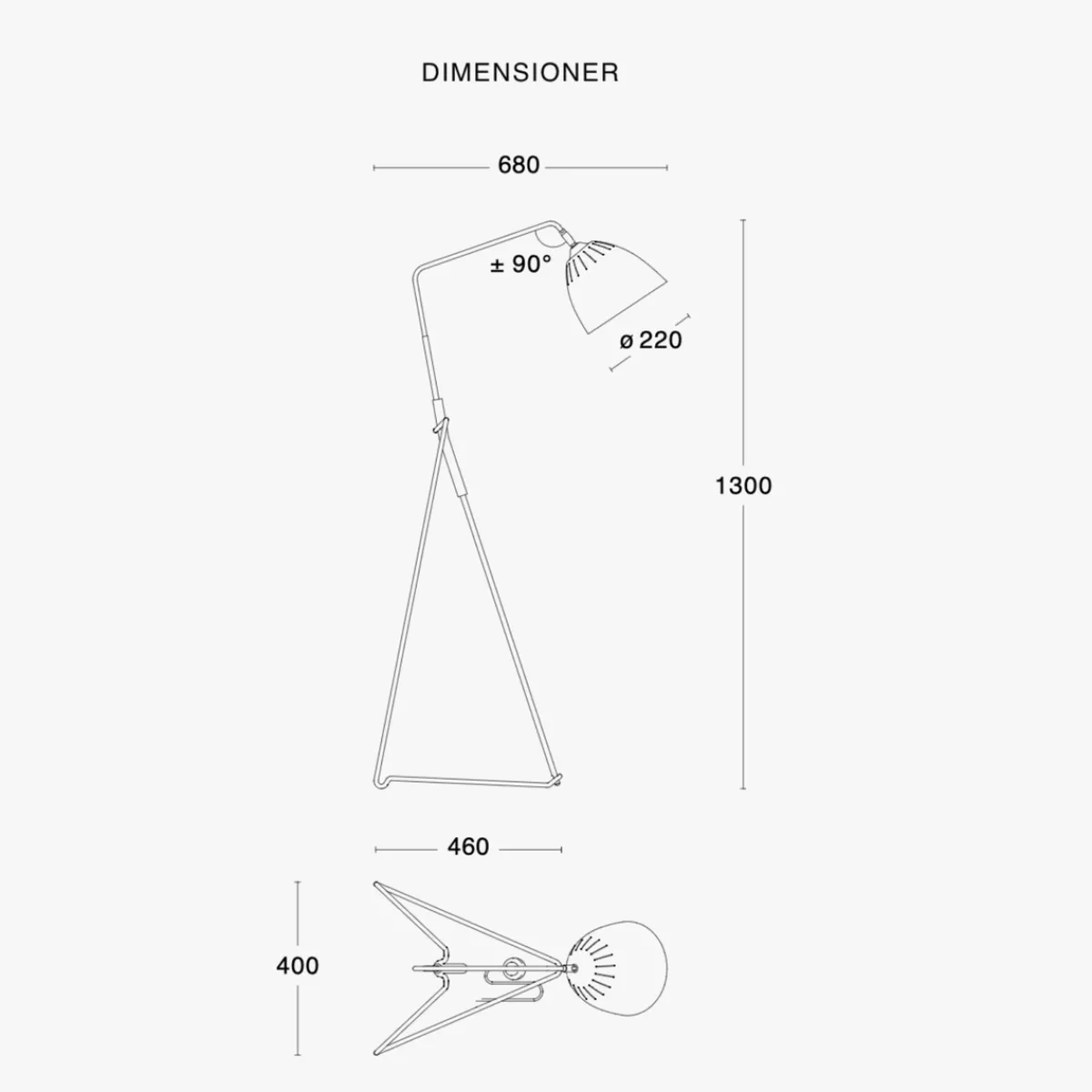 Lean er tilgjengelig i matt svart og hvit teksturfarge. Gulvlampens skrå arm strekker seg praktisk over en sofa eller lenestol, og den justerbare skjermen gir et komfortabelt leselys.