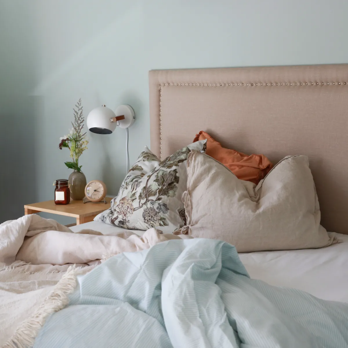 Stilig vegglampe i sort med brun lærdetalj. Av/på-bryter på kabelen.