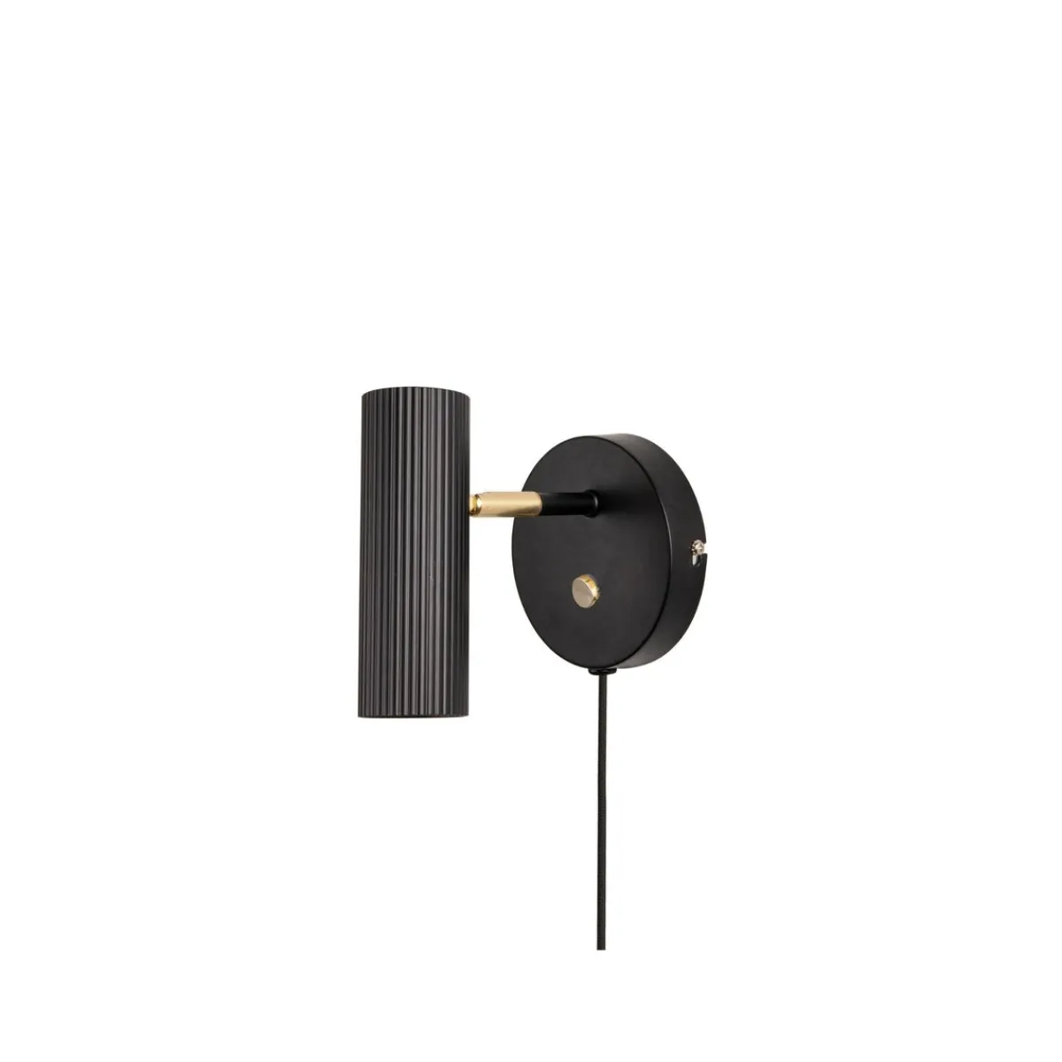 Hubble er en moderne vegglampe med en rørformet enkel ribbet skjerm i metall. Skjermen kan vinkles vertikalt og sideveis.