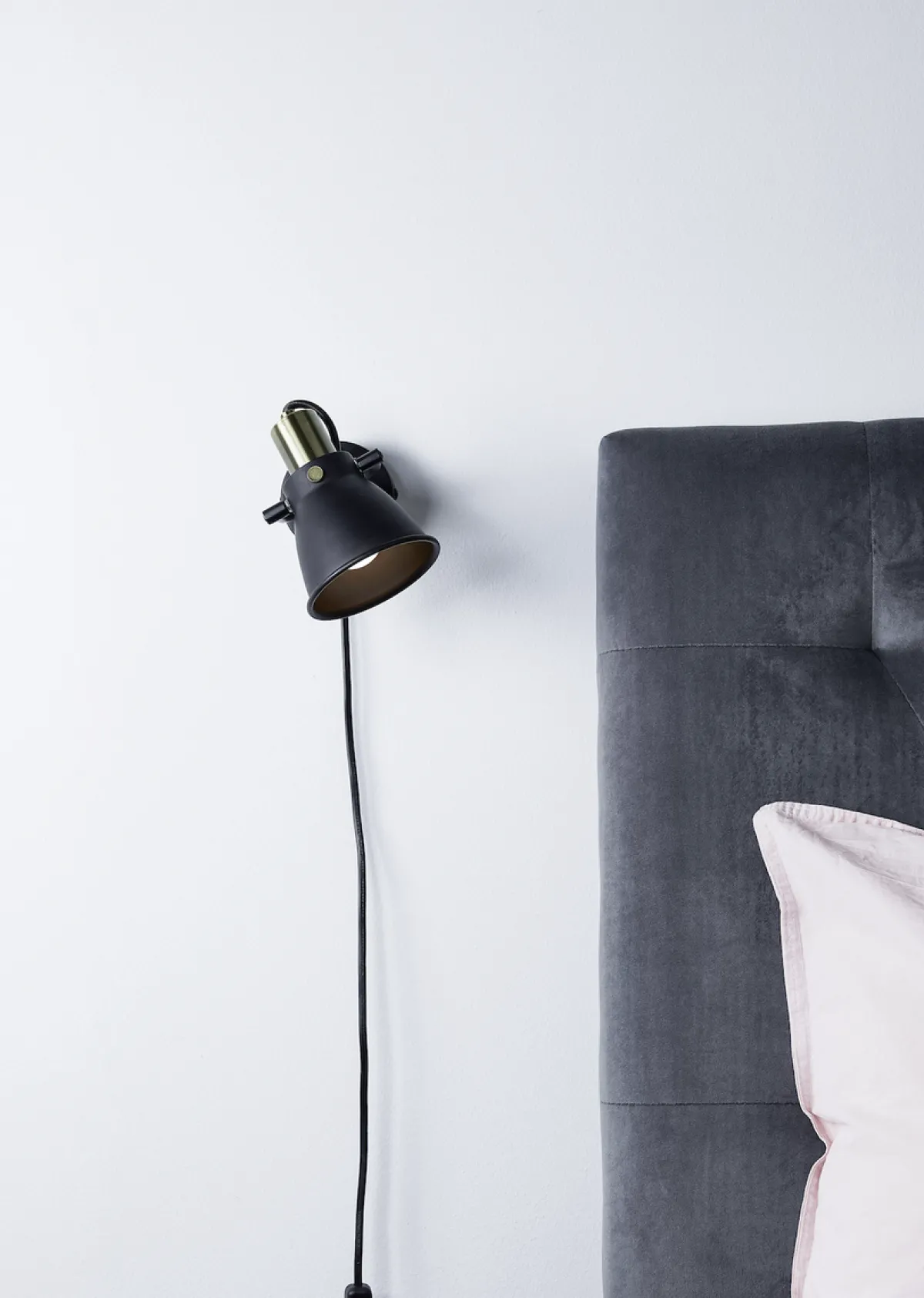 Alton er en røff og stilig vegglampe i metall som finnes i fargene sort og hvit. Serien inneholder også taklampe i samme stilen.