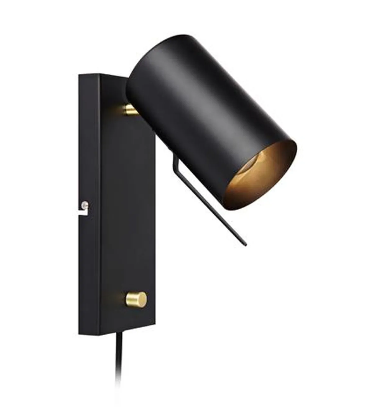 Carrie-vegglampe i sort metall fra Markslöjd har bryter/dimmer på veggplaten.
