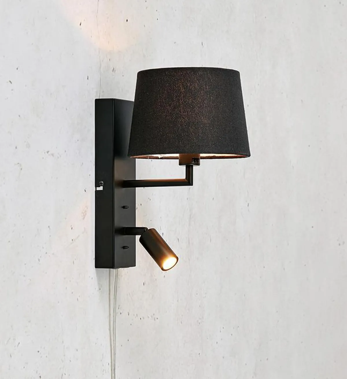 Como er en stilren og moderne vegglampe som finnes i 2 farger. Svart eller stålfarget med hvit skjerm.