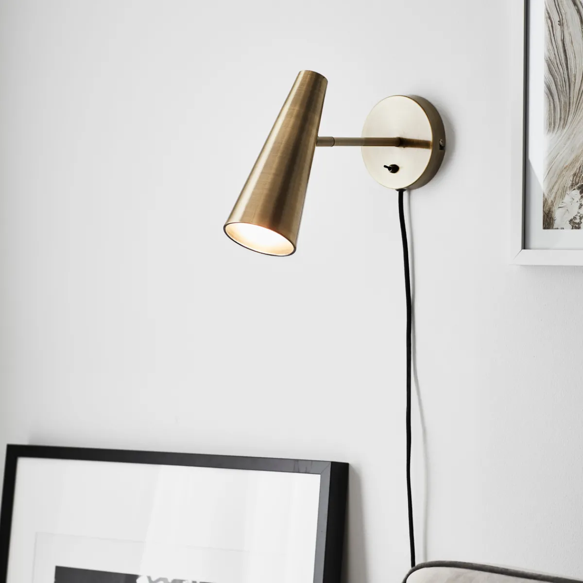 Peak er en stilfull vegglampe i metall, med av/på-lysbryter på veggplaten. Du behøver 1 stk lyspære med E14-sokkel til lampen.