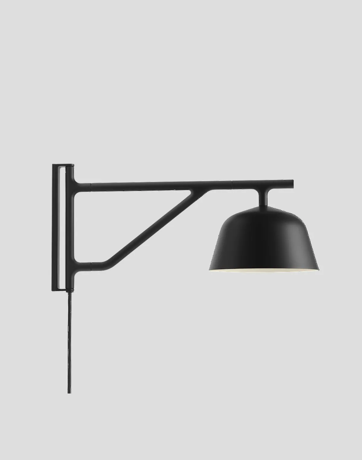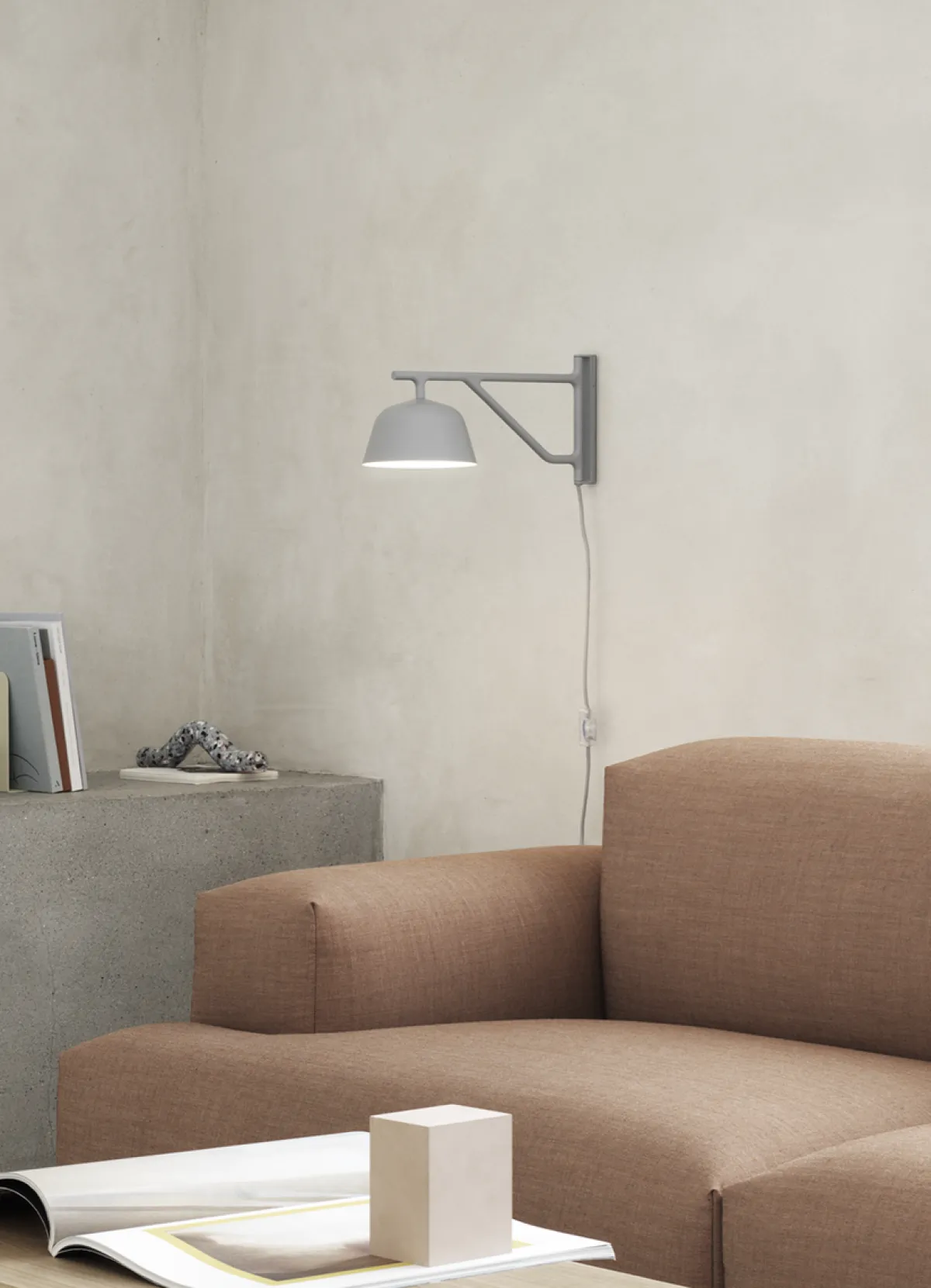 Ambit vegglampe er en moderne vegglampe med svingbar arm. Kommer i fire farger. Kommer med 5,5 watt Led-pære. Produsert i aluminuim med ledning i PVC.