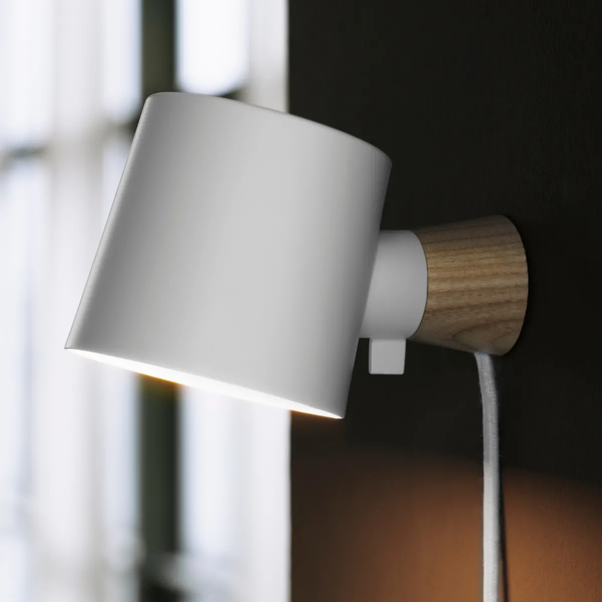Rise vegglampe fra Normann Copenhagen – en ukomplisert men lekker lampe som passer like bra på soverommet til leselampe som i stua eller kjøkkenet. Med sitt stilrene og enkle uttrykk glir den inn i alle slags interiørtyper. Basen i ask skaper en herlig kontrast til de pulverlakkerte aluminiumskjermene. Alt i alt en rålekker lampe fra en dansk kvalitetsdesigner.