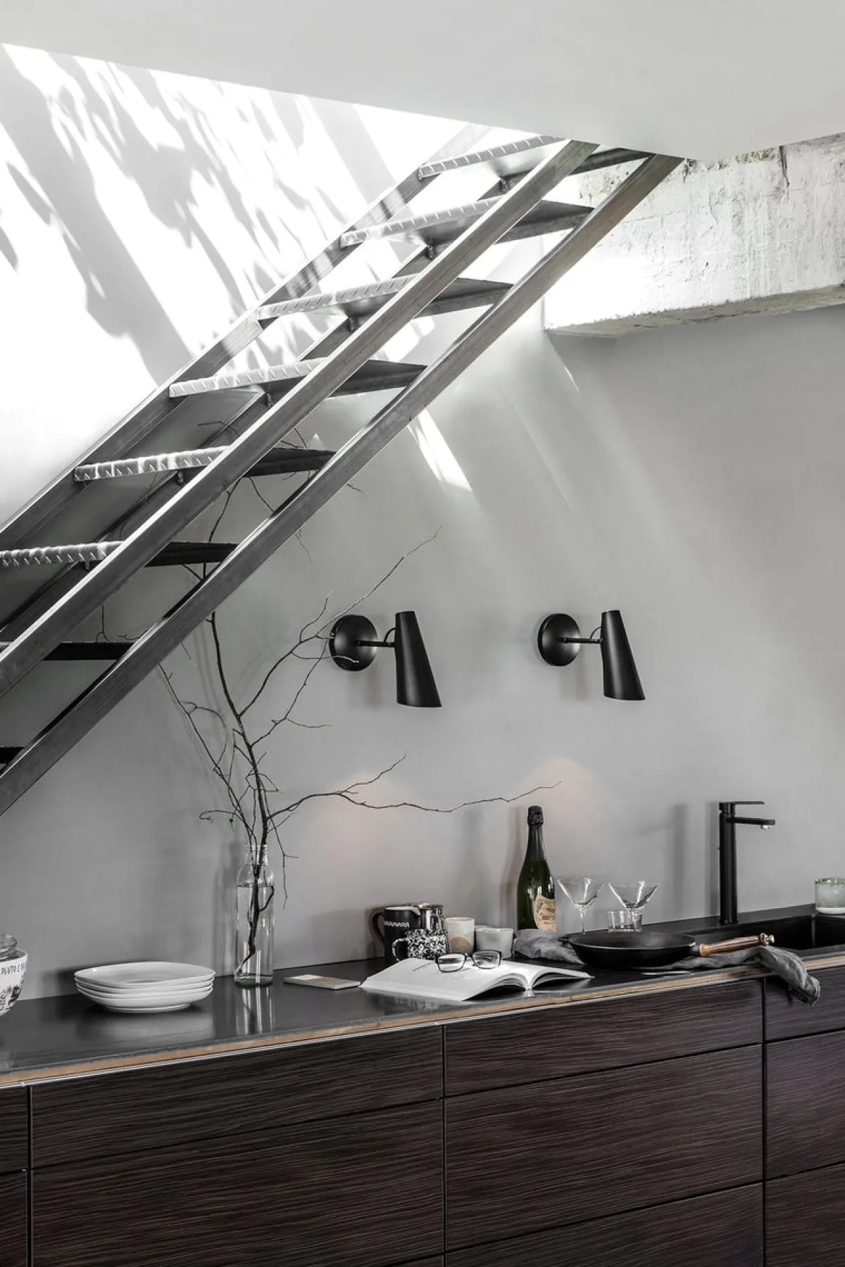 Birdy vegglampe med kort arm ble designet av Birger Dahl i 1952. Like moderne og funksjonell i dag tross sin høye alder. Denne lampen er meget funksjonell da hodet er bevegelig slik at en kan styre lyset dit en vil. Her får en direkte lys, uten blending. Egner seg derfor som leselampe og arbeidslampe. Anbefaler Led spot pære i denne.