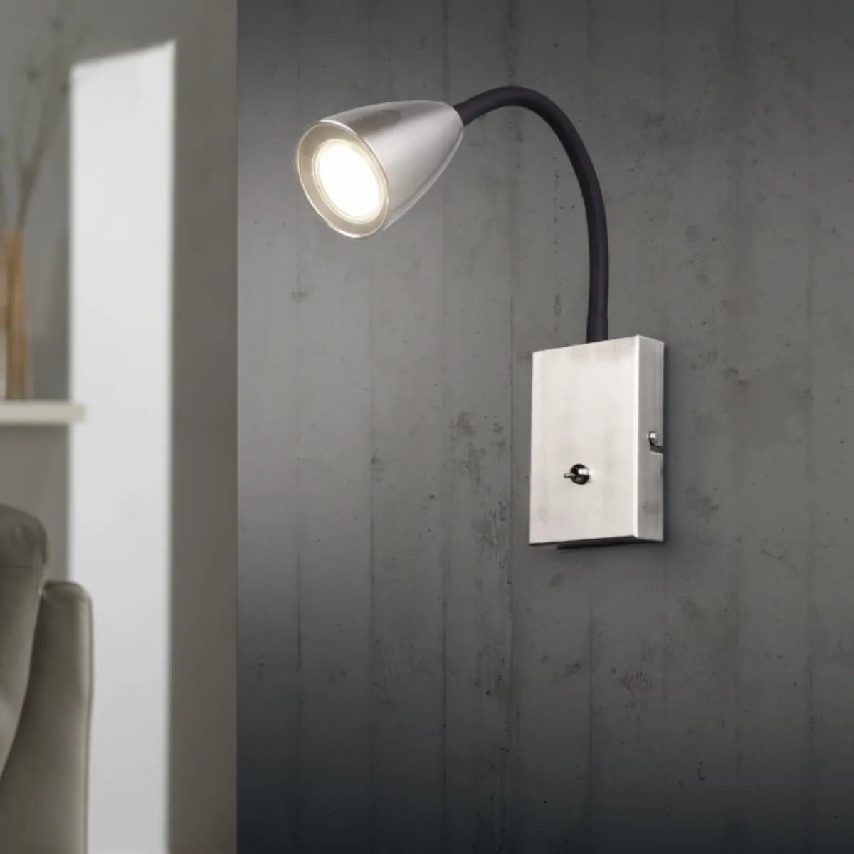 Wanda vegglampe fra Trio Lighting er en moderne og funksjonell innendørsvegglampe som er spesielt designet for lesing. Lampen har en justerbar arm som gjør at du kan justere og vinkle lyset etter behov og ønske.
