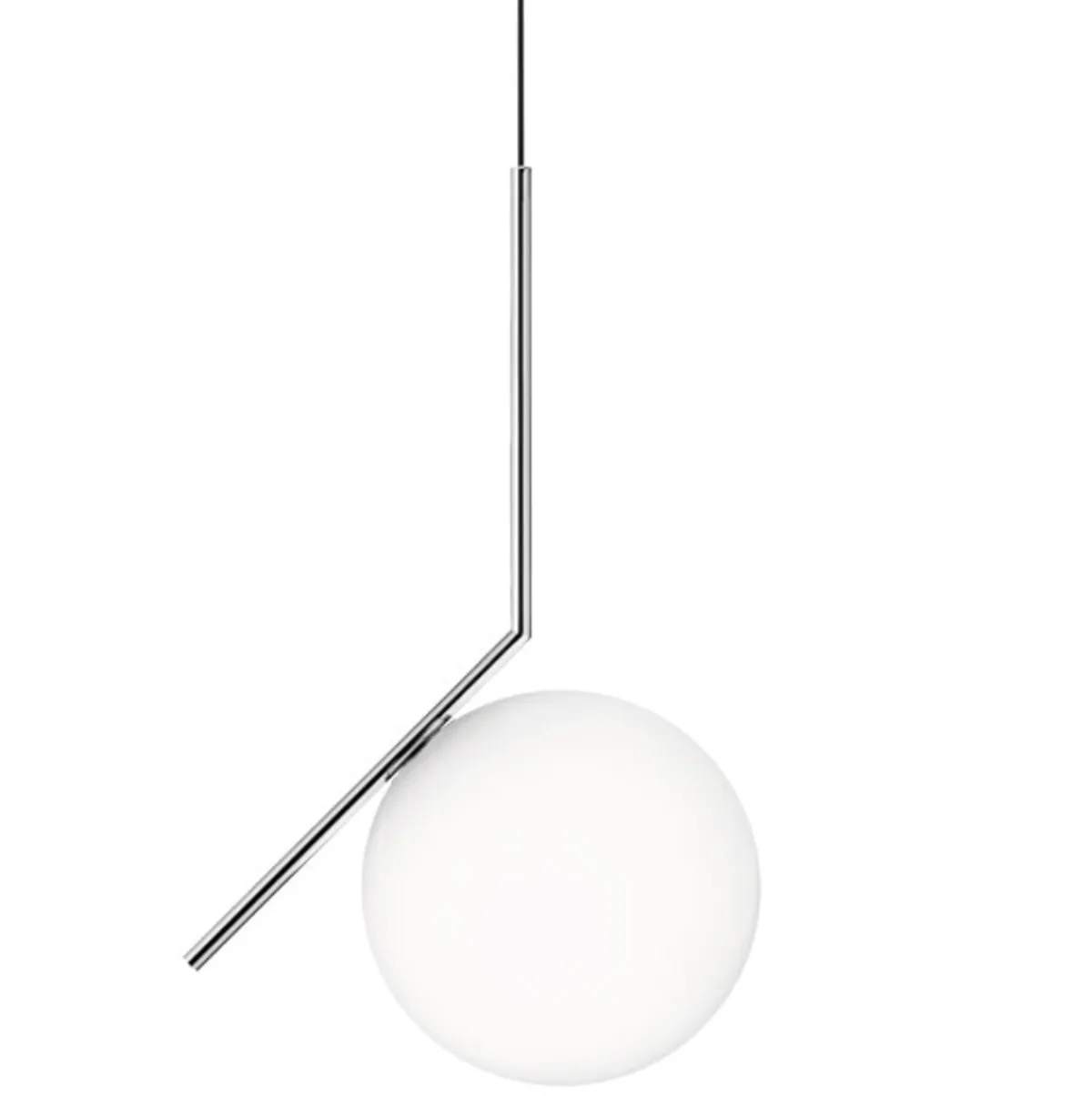 FLOS IC Lights S2 taklampe er en lampe som utfordrer balansesansen vår, kuppelen gir en optisk illusjon av en kule som svever. Lampen er elegant utformet, gir godt med generelt lys, og den blir som et smykke over spisestuen din. Lampen er perfekt å bruke over spisebord, over salongbord, på soverom, i trappeoppgang. Det munnblåste glasset mykner lyset selv om det skulle stå på full styrke, og den er også fin å dimme for stemningslys. Finnes som taklampe, vegglampe, gulvlampe og bordlampe. Designet av Michael Anastassiades i 2014.