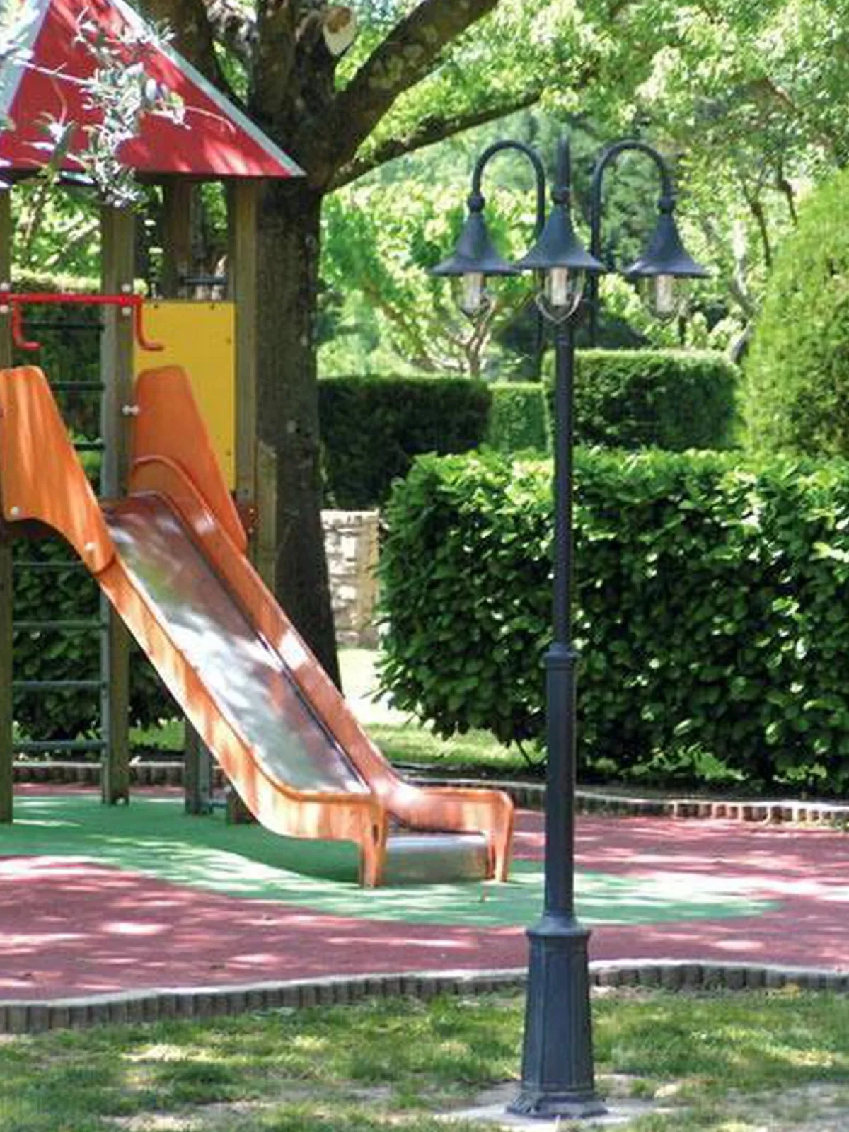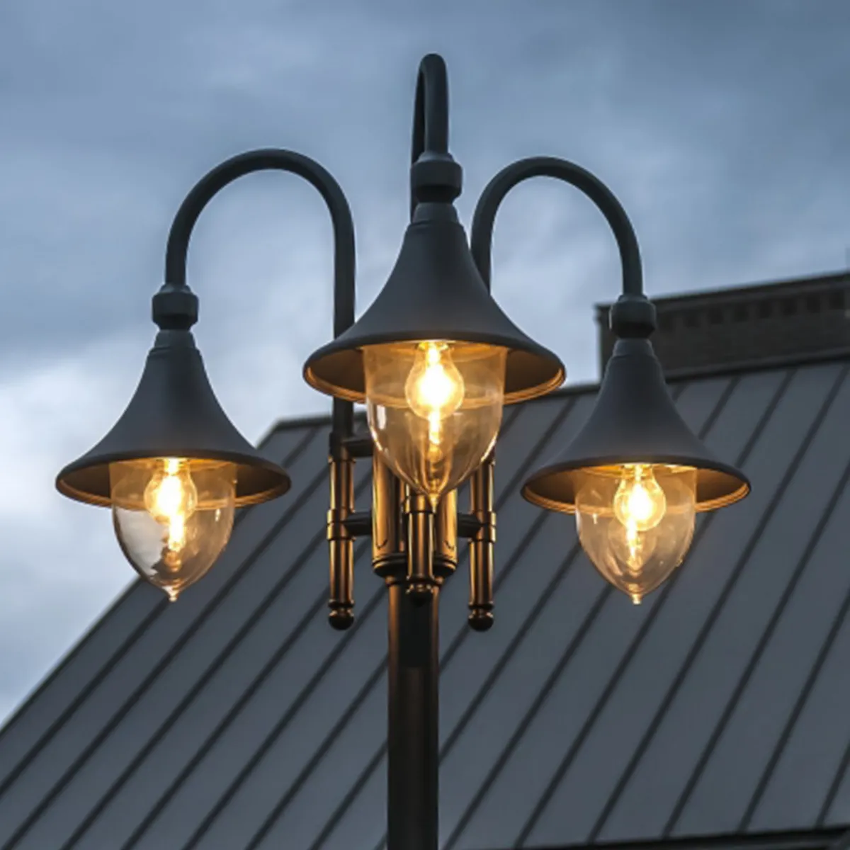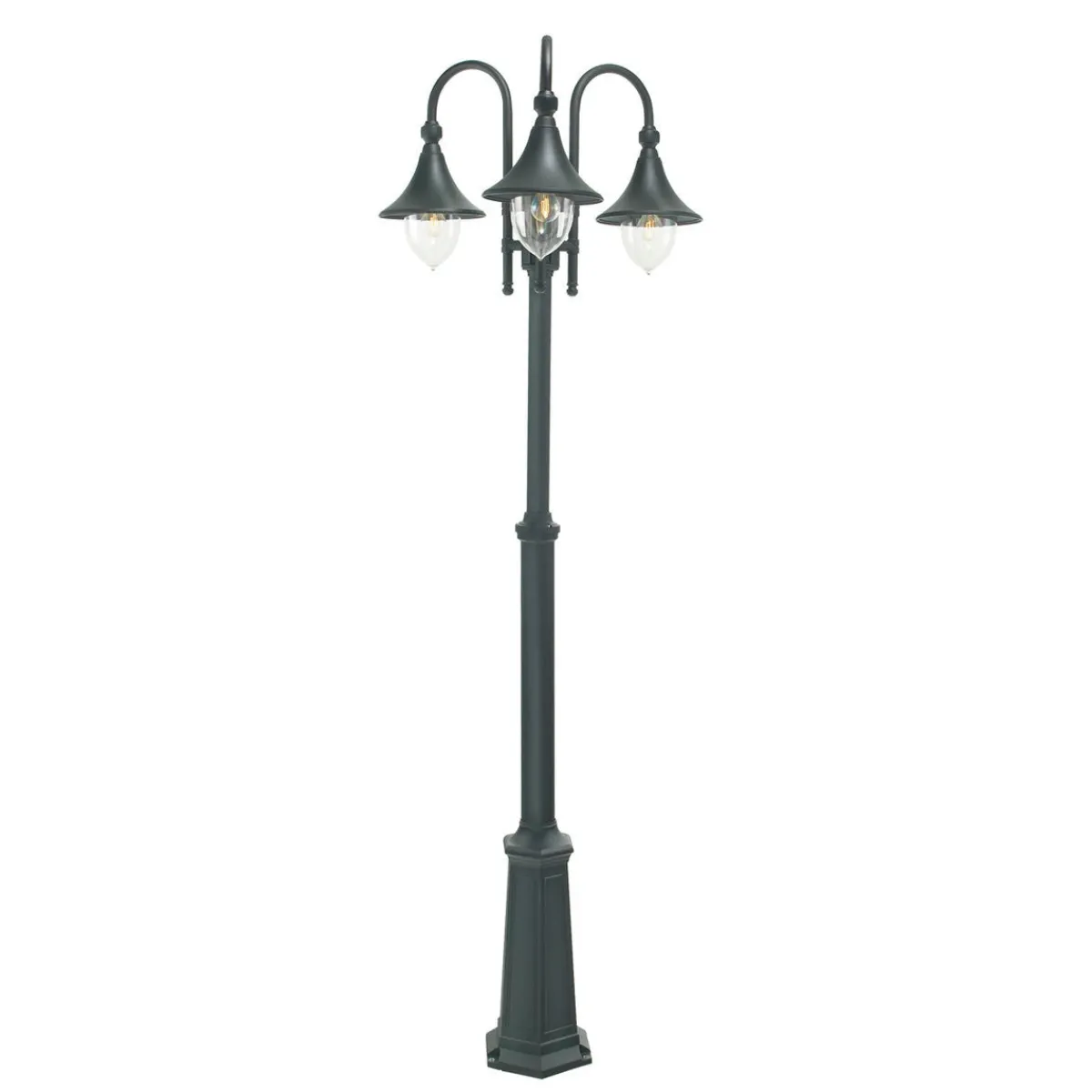 Stolpelampe i klassisk design. Høyden på stolpen kan enkelt justeres. Glasset er av slagfast klar (sotet) polykarbonat. Hvit kuppel kan bestilles.