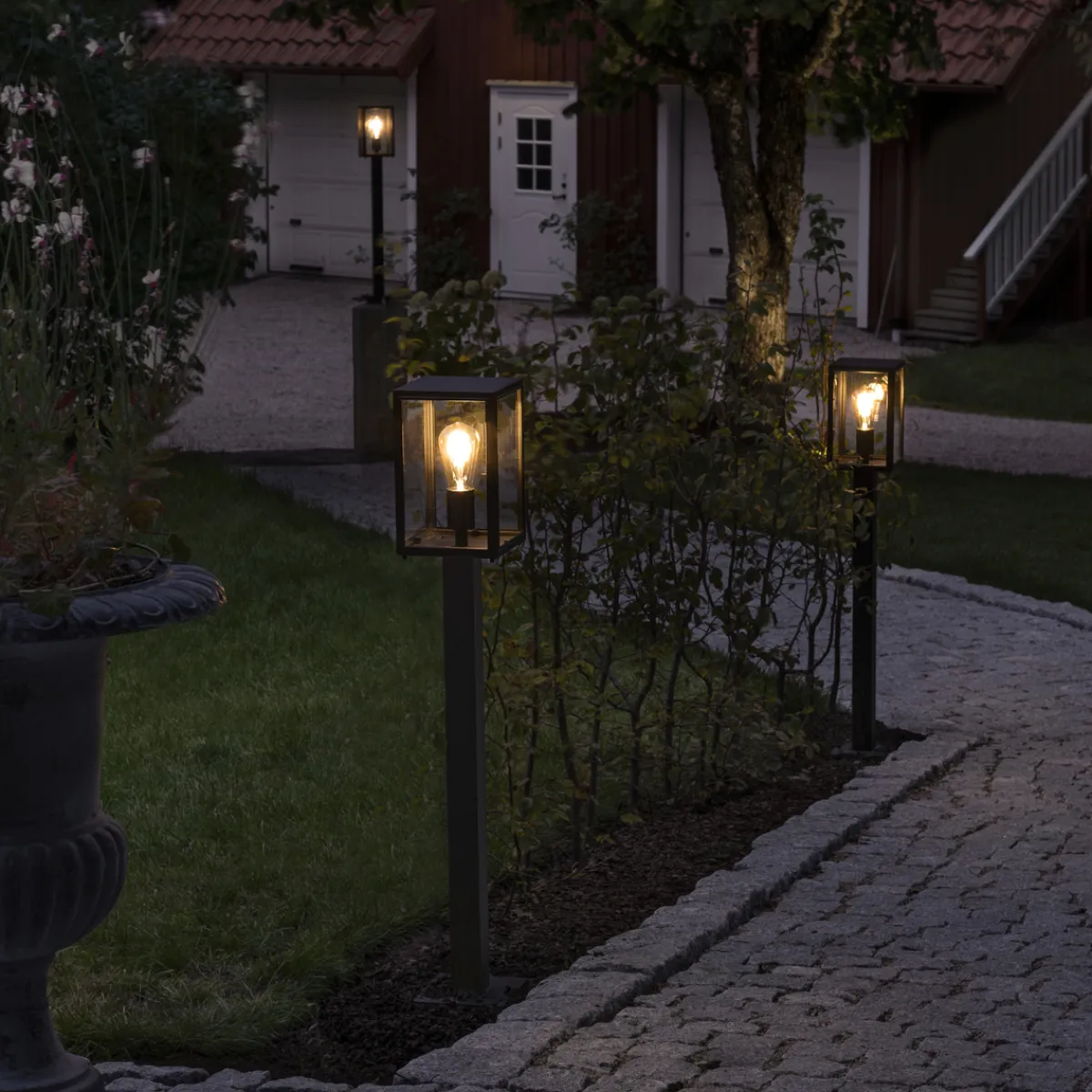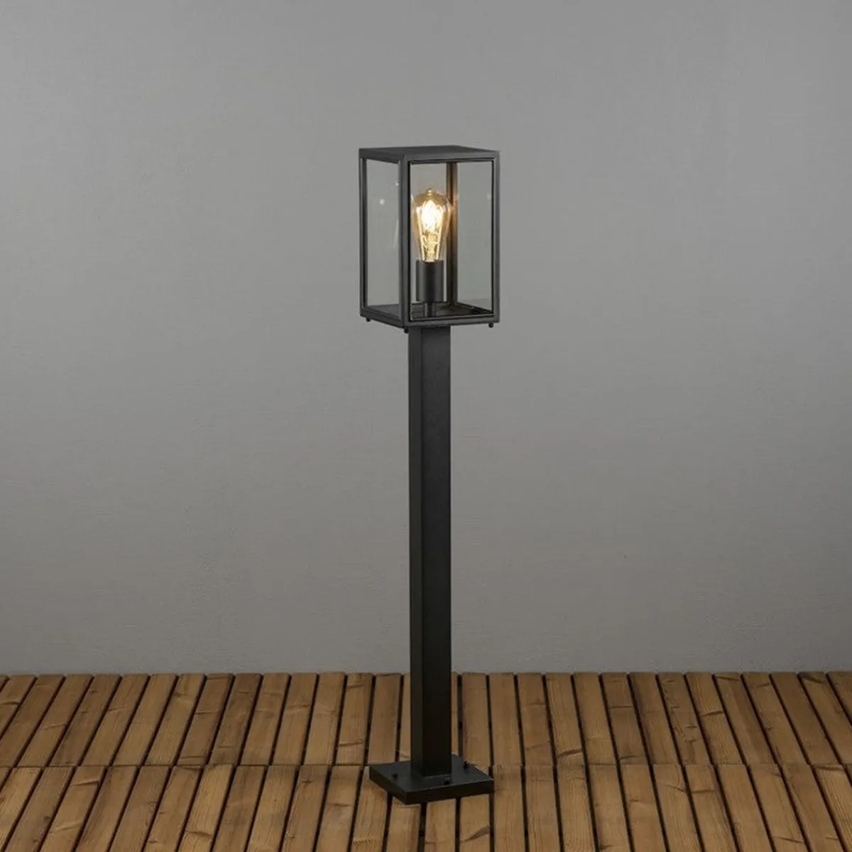 Carpi stolpelampe 100 cm i sortlakkert metall og klart glass.