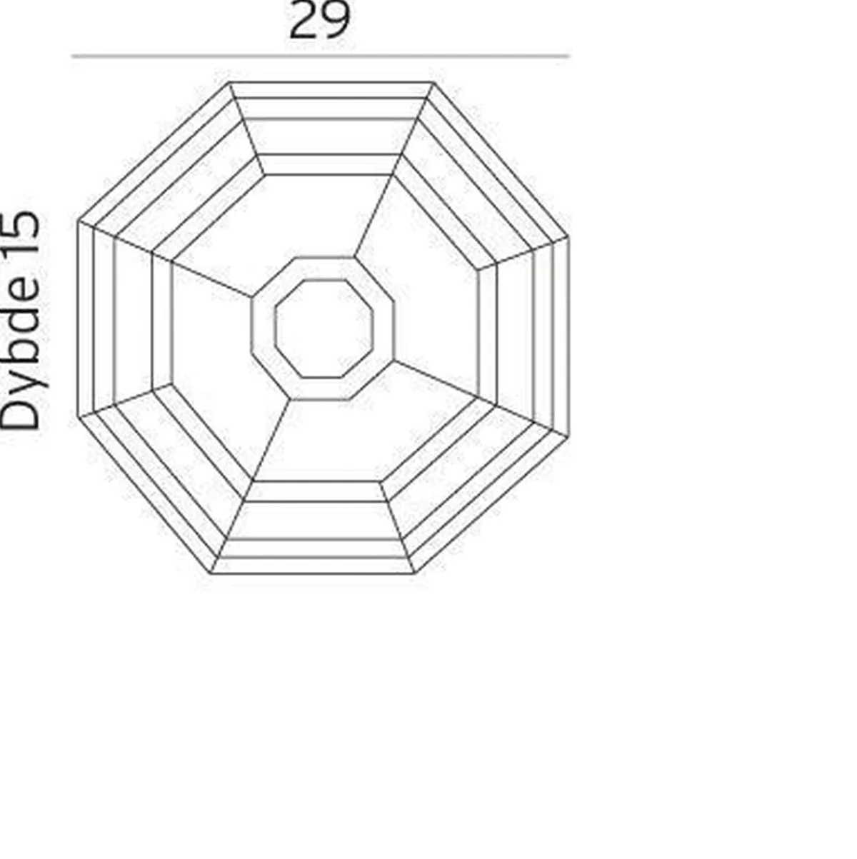 Åttekantet taklampe i klassisk design. Glasset er frosset polykarbonat.