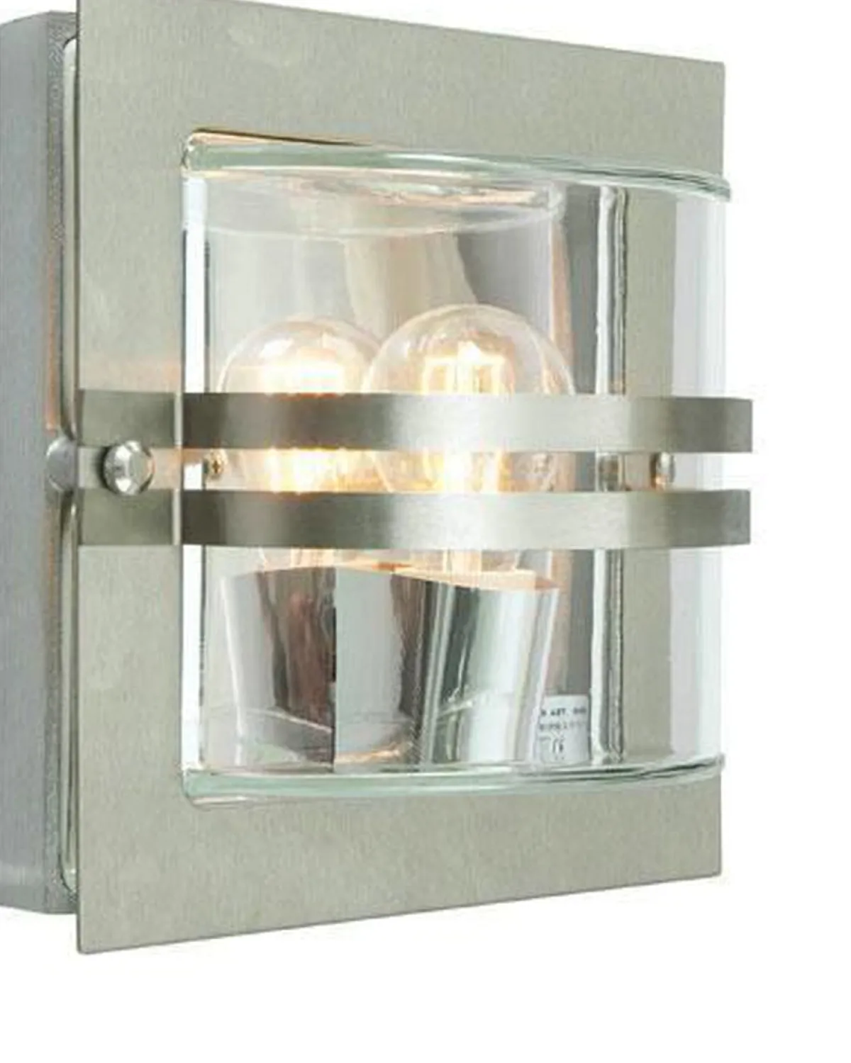 Vegglampe i moderne design for utendørsbruk. Armaturen har klart glass