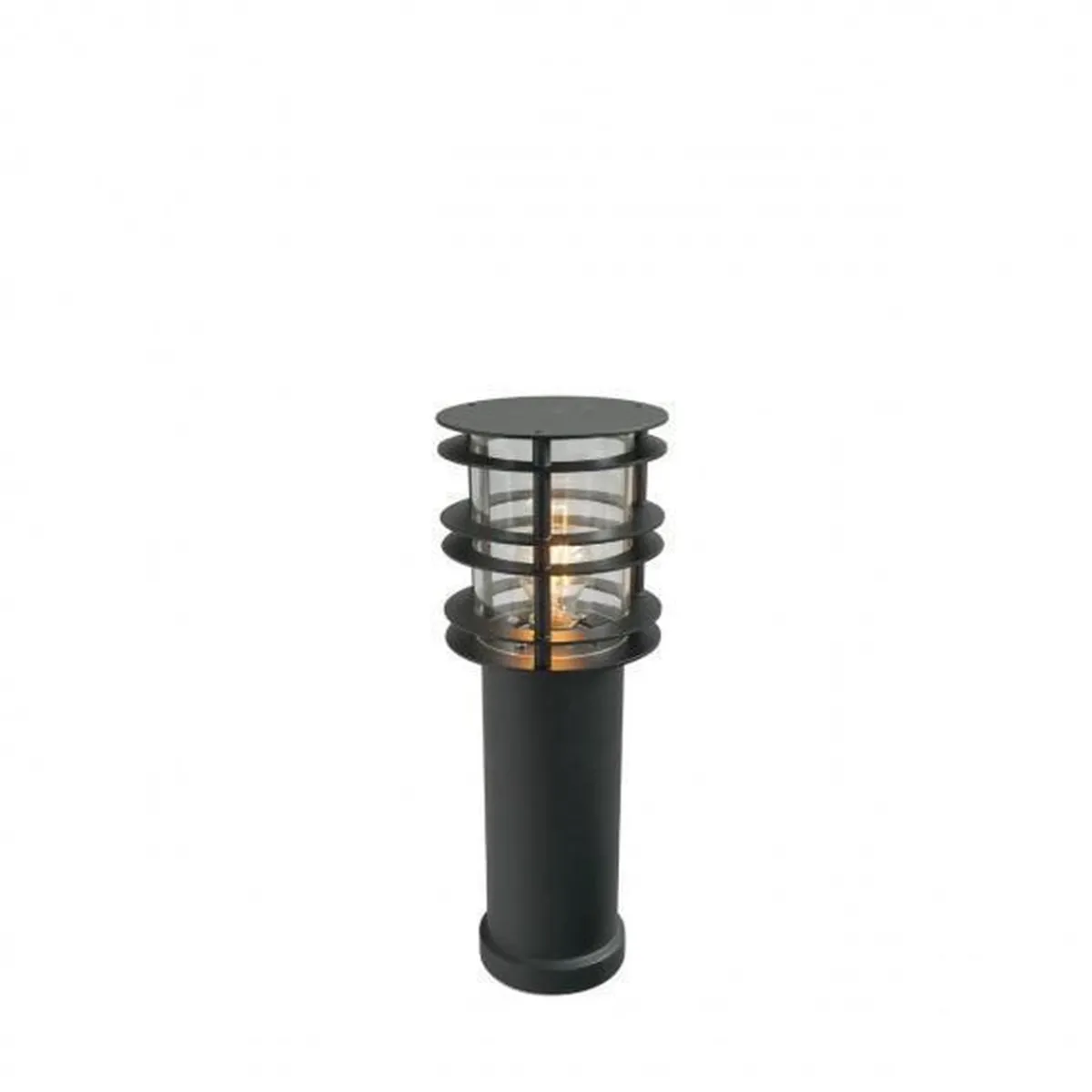 Pullert i moderne design med klart glass i polykarbonat. Lampen finnes i tre ulike høyder og i fargene galvanisert stål og sort. Lampen er en del av en serie som inneholder vegglamper i to ulike størrelser, portstolper i to ulike størrelser, blomsterstolpe, teleskopstolper med 1 til 3 lyktehoder, samt pullerter i to ulike høyder. Alle utgaver leveres med klar e polykarbonat deksel.