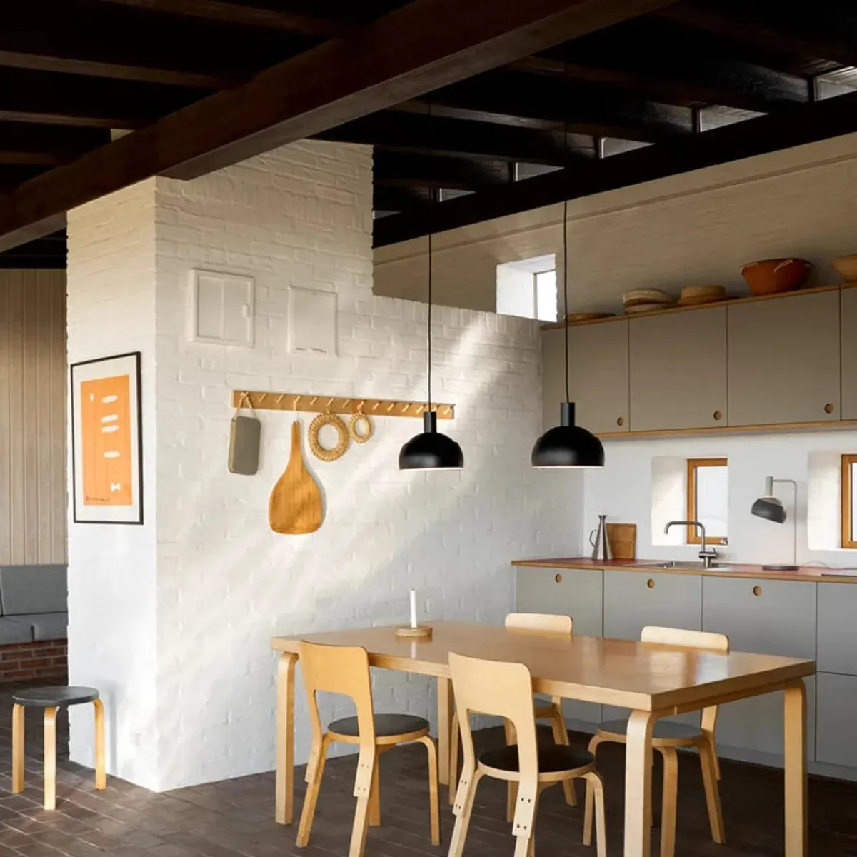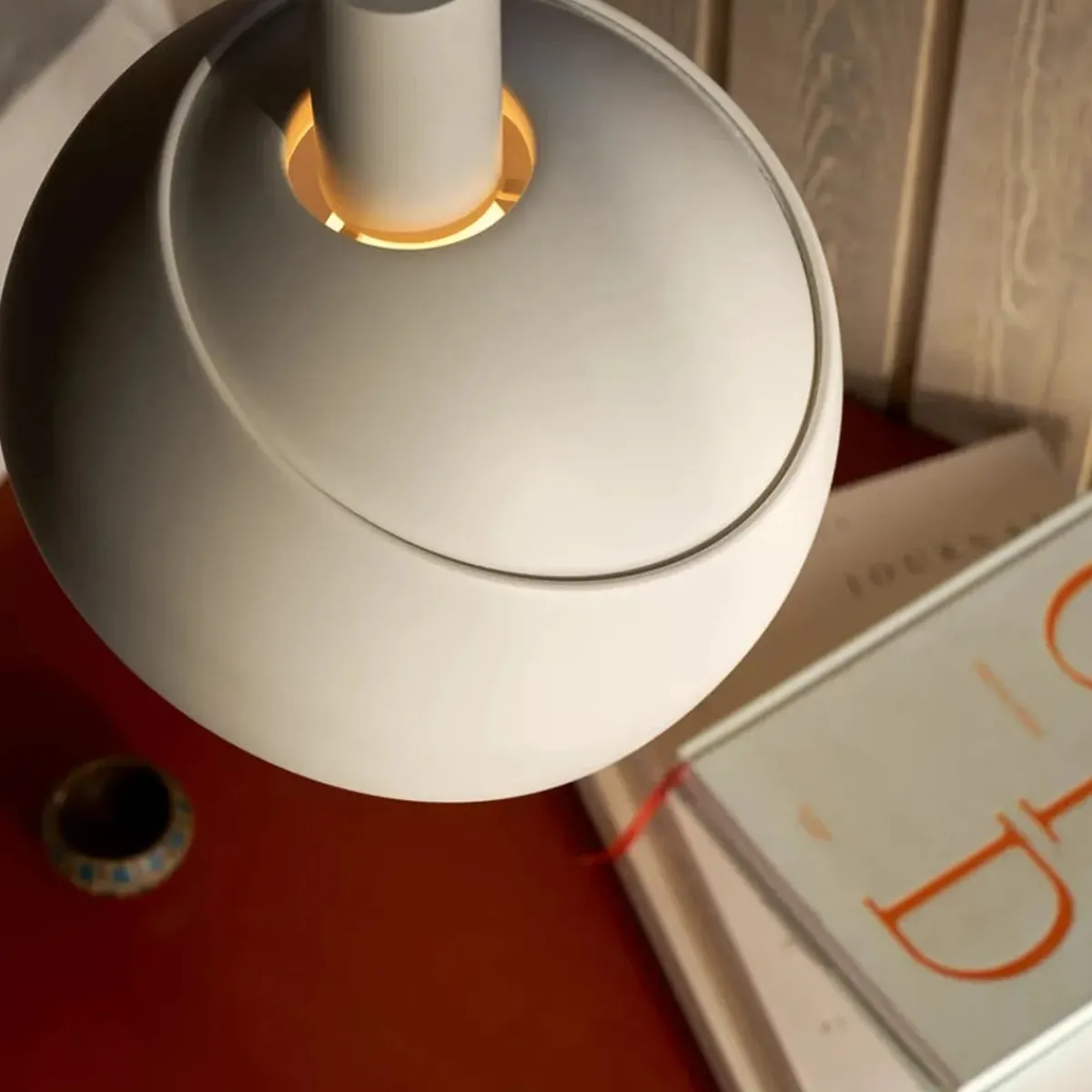 Taklampen og bordlampen ble opprinnelig designet i 1963 og deretter gjeninnført som FJ Elements i 2025, inkludert den originale tofargede grå varianten.