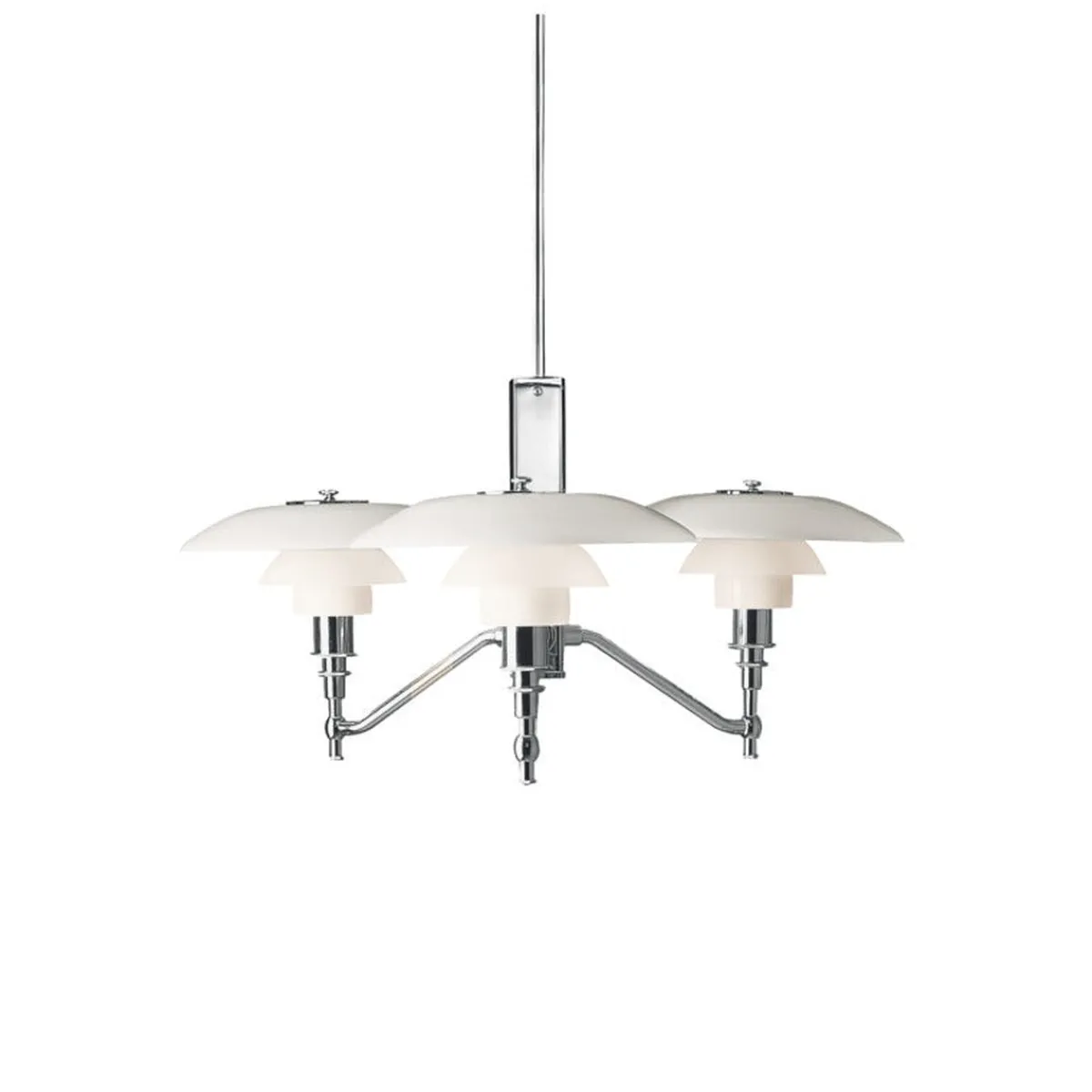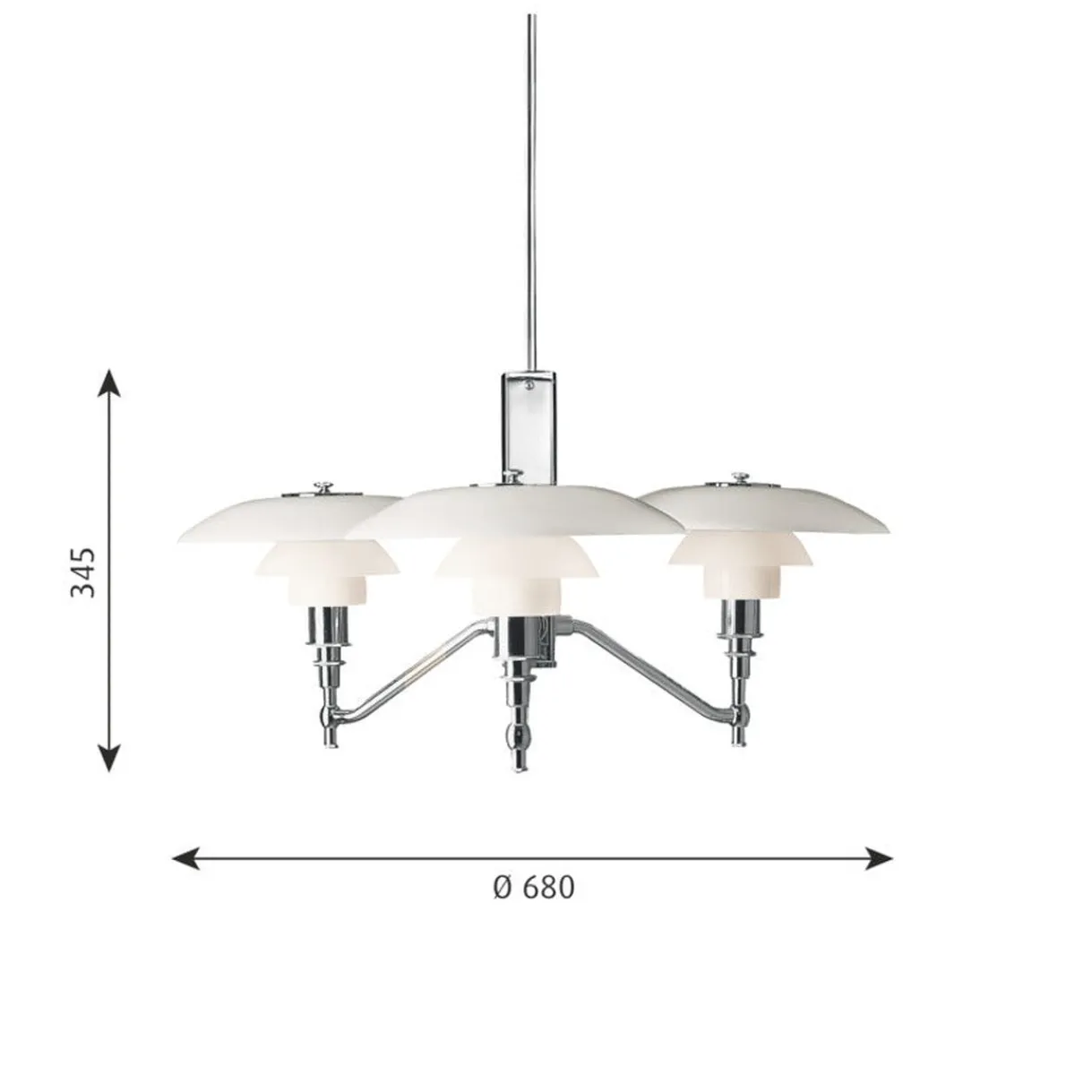 - Materiale: Skjermer: Munnblåst, hvitt opalt glass. Ramme: Høyglanset krombelagt, ekstrudert messing. Oppheng: Høyglanset krombelagt, ekstrudert messing.IP20