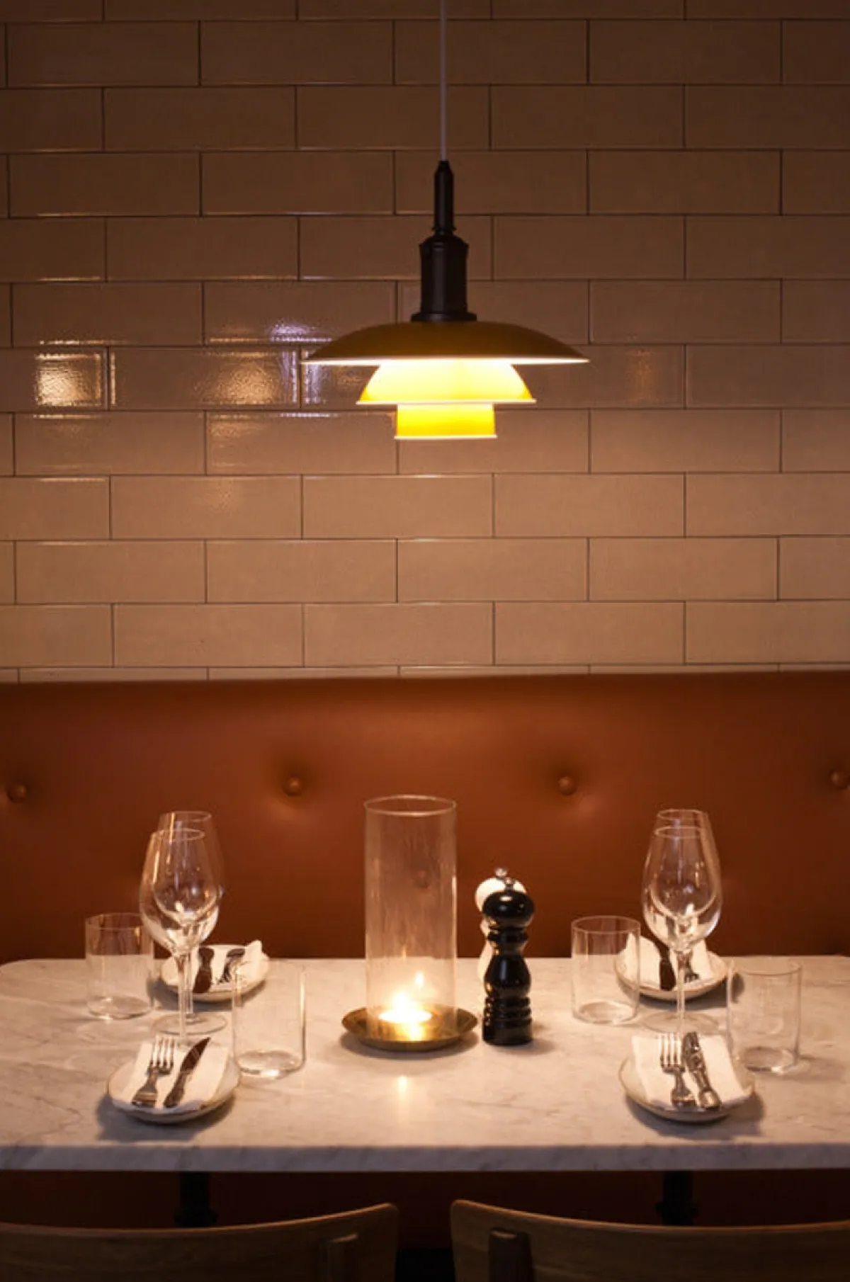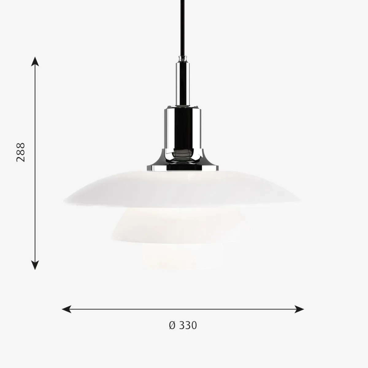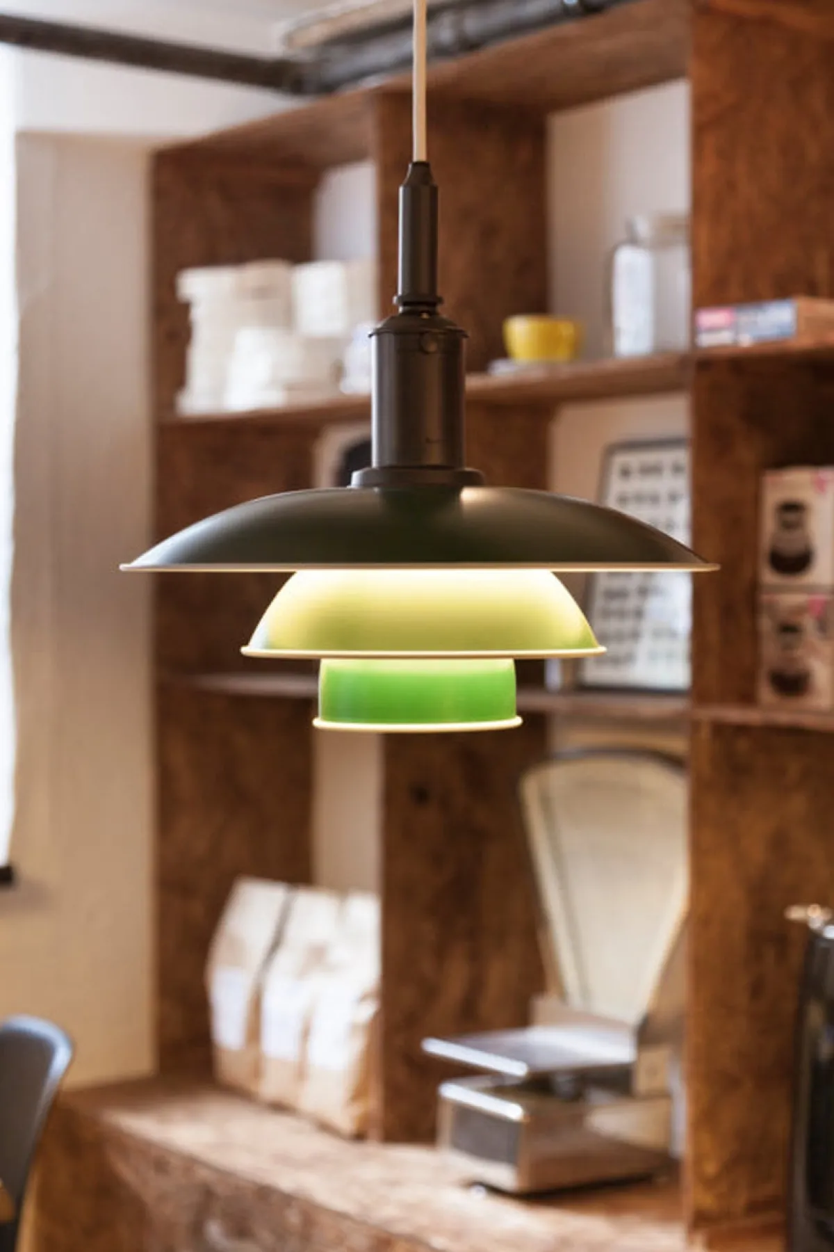 Armaturen er designet etter et prinsipp basert på et reflekterende tre-skjermssystem som styrer det meste av lyset nedover. Skjermene er laget av munnblåst trelags opalt glass som er blankt på toppen og sandblåst matt på undersiden. Dette gir en myk og jevn lysfordeling.