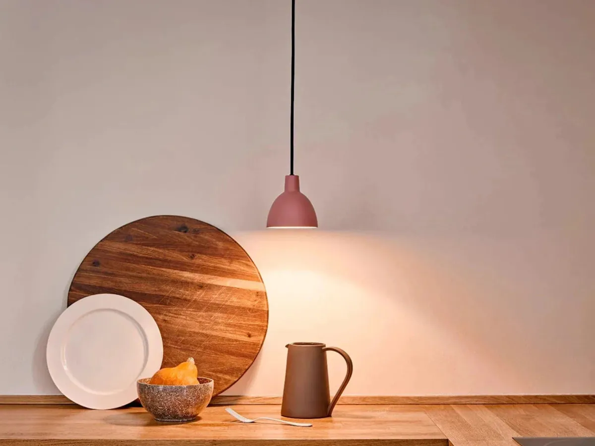 Pendelen avgir mykt, nedadrettet lys. Den matte, hvitmalte innsiden av den elliptiske skjermen bidrar til å sikre jevn fordeling av lyset.