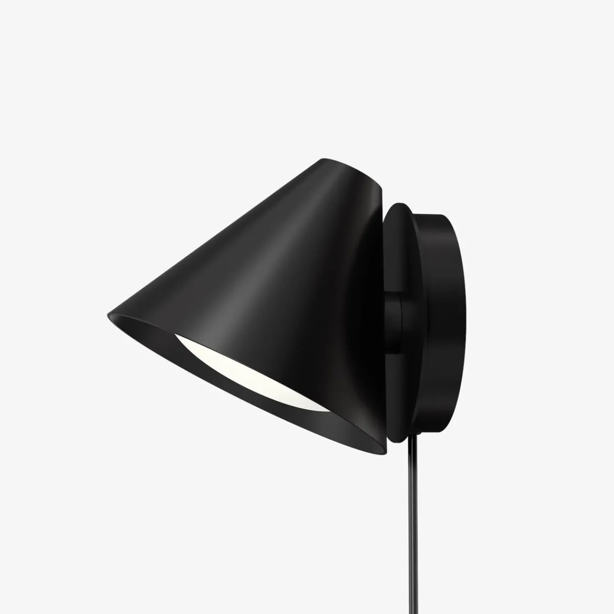 Vegglampens karakteristiske koniske skjerm har en innebygd buet avskjermer. Dette sikrer et attraktivt og blendefritt lys. Et svakt lys avgis også oppover gjennom en ensartet, diskré åpning i toppen av skjermen, for å gi en perfekt stemning. Armaturen kan monteres vendt nedover for å lede lyset eller oppover for en indirekte belysningsløsning. Den buede avskjermeren gir et glimt av innsiden av skjermen, samtidig som den reduserer eventuell blending. Keglen Vegg kan monteres for å lede lyset nedover eller oppover. Lampeskjermen er justerbar og kan rotere 45 grader til hver side for å rette lyset der det er nødvendig. Bryteren og dimmeren er plassert på sokkelen. På sokkelen kommer ledningen ut på siden eller armaturen kan monteres direkte på en stikkontakt.