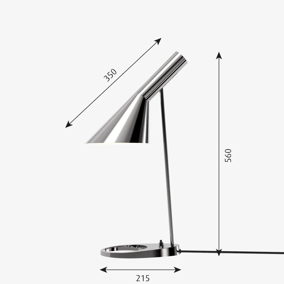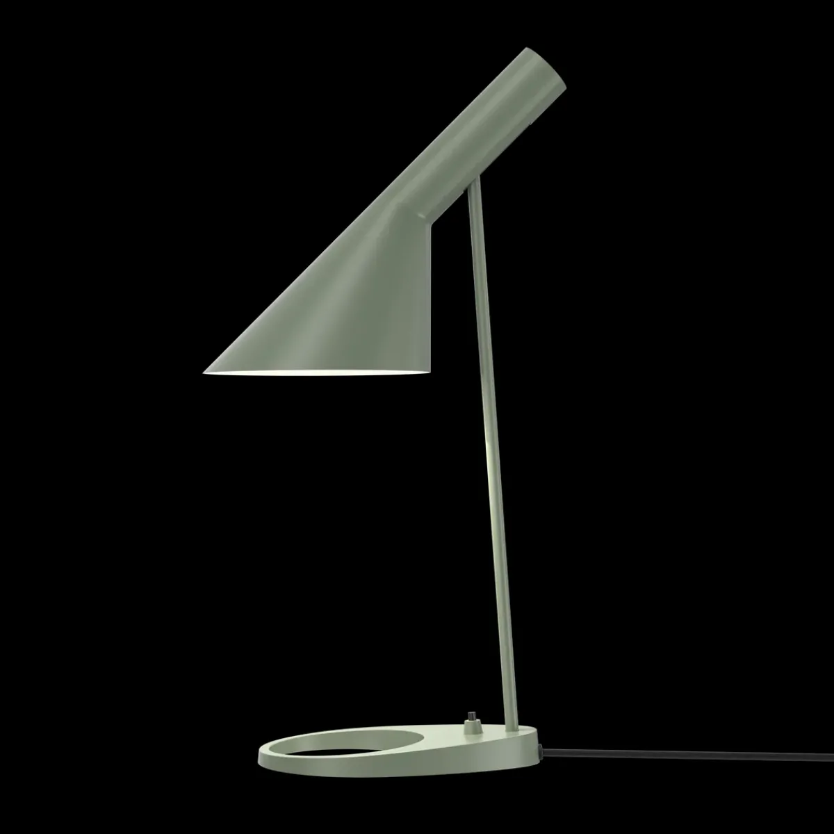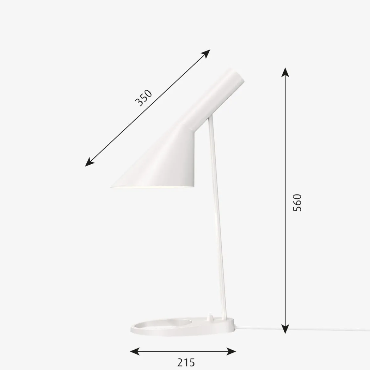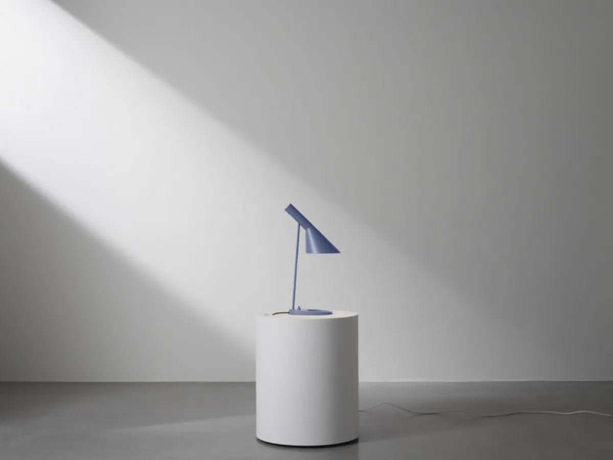 AJ bordlampe fra Louis Poulsen har et ikonisk design med sine karakteristiske former. Lampen har et direkte , retningsbestemt lys. Vinkelen på skjermen kan justeres for å optimalisere lysfordelingen. Skjermen er malt hvit på innsiden for å gi et mykt og komfortabelt lys. Lampen har bryter på lampefoten. Et must for design-interesserte.