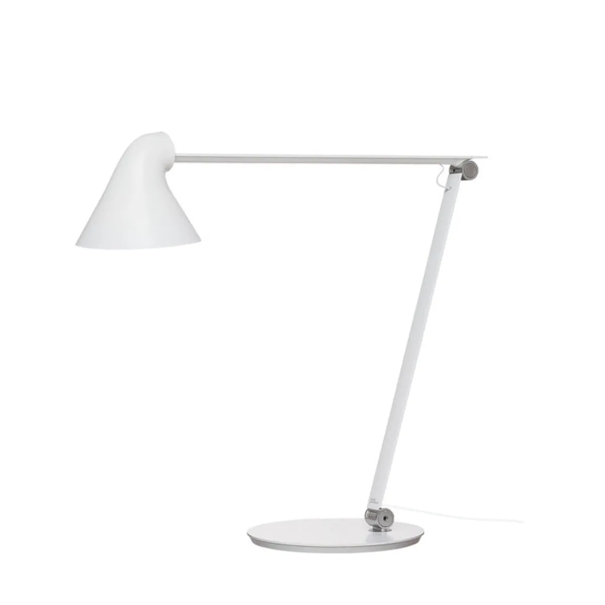 Louis Poulsen NJP bordlampe er en modernistisk vri på den klassiske arkitektlampen. Lampen gir direkte, blendfritt, horisontalt lys og reflekterer samtidig noe av lyset gjennom baksiden av hodet slik at øvre del av armen lyses opp. Det ergonomiske designet armaturhodet former lyset og sørger for optimal retning på lyset. Et enkelt mekanisk system gir stor bevegelsesfrihet, slik at lyset alltid kan stilles inn på det perfekte stedet på arbeidsplassen. Skjermen er malt hvit på innsiden og reflekterer behagelig, diffust lys.