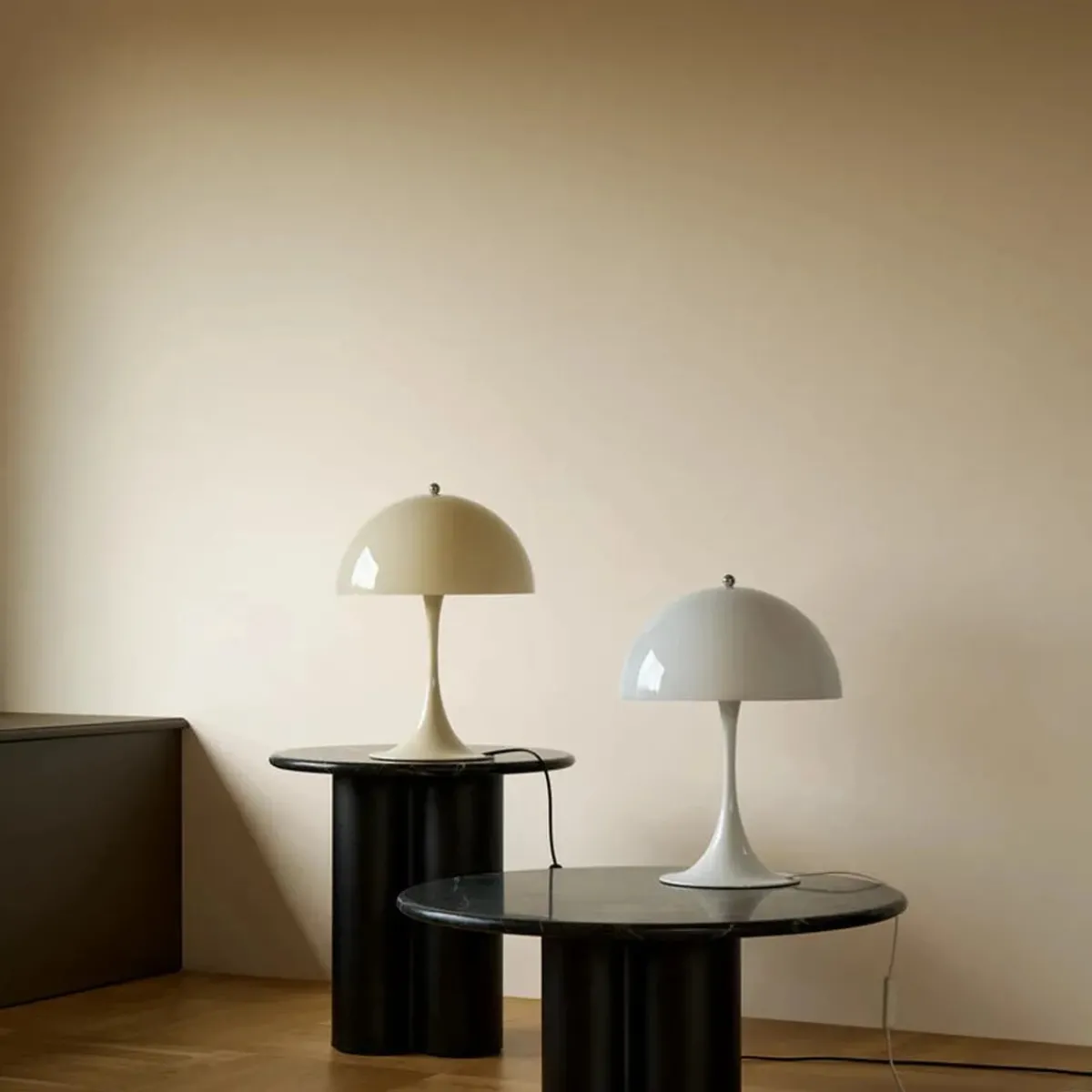 Panthella bordlampe avgir et blendefritt, mykt og komfortabelt lys.