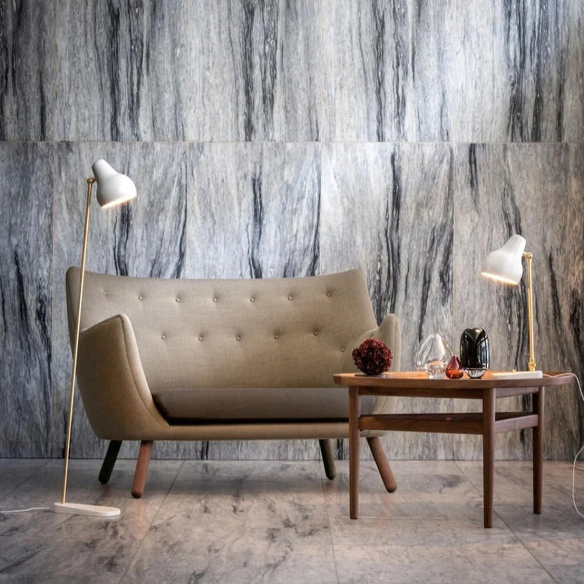 VL38-bordlampe ble opprinnelig designet sent i 1930 av Vilhelm Lauritzen i samarbeid med Louis Poulsen til Radiohuset-bygget (det danske kringkastingshuset) i København (i dag Det Kongelige Danske Kunstakademi). Vilhelm Lauritzens lampedesign, VL38, samt pendelen VL45 ble begge designet for Radiohuset, og ble første gang vist i Louis Poulsens kataloger etter 2. verdenskrig på midten av 1940-tallet. VL38 i hvit/messing ble relansert høsten 2016. Armaturene er utstyrt med LED-lyskilder for å imøtekomme moderne utvikling innen lysteknologi og energieffektivitet. Den svarte utgaven av VL38 ble introdusert høsten 2017. Den har en sterkere utforming enn den opprinnelige hvite versjonen, men har likevel bevart den høyt elskede retrostilen og det myke, buede uttrykket i den originale designen.