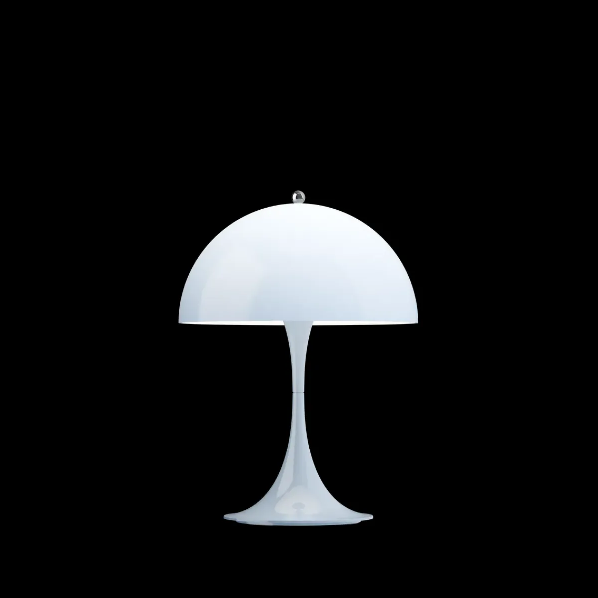 Panthella 250 Portable lampe er en bærbar versjon av den populære bordlampen Panthella, med en skjerm som har en diameter på 250 mm. Dette er en lampe som skaper god atmosfære, uansett hvor eller når, kan du ta denne med deg hvor du trenger lys og litt ekstra stemning i hjemmet.