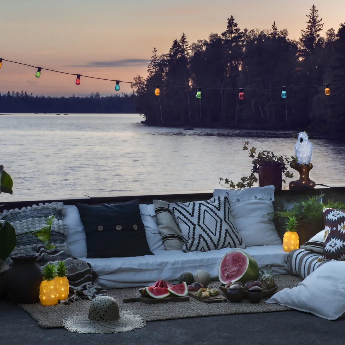 Lysslynge med 40 flerfargede LED-lamper. Faststøpte lyspærer og kuppel i plast som gjør dem uknuselig. Lysene i ulike farger er med på å skape ekstra leken, men koselig stemning. Lyspærene er 5 cm høye og 3 cm i diameter.