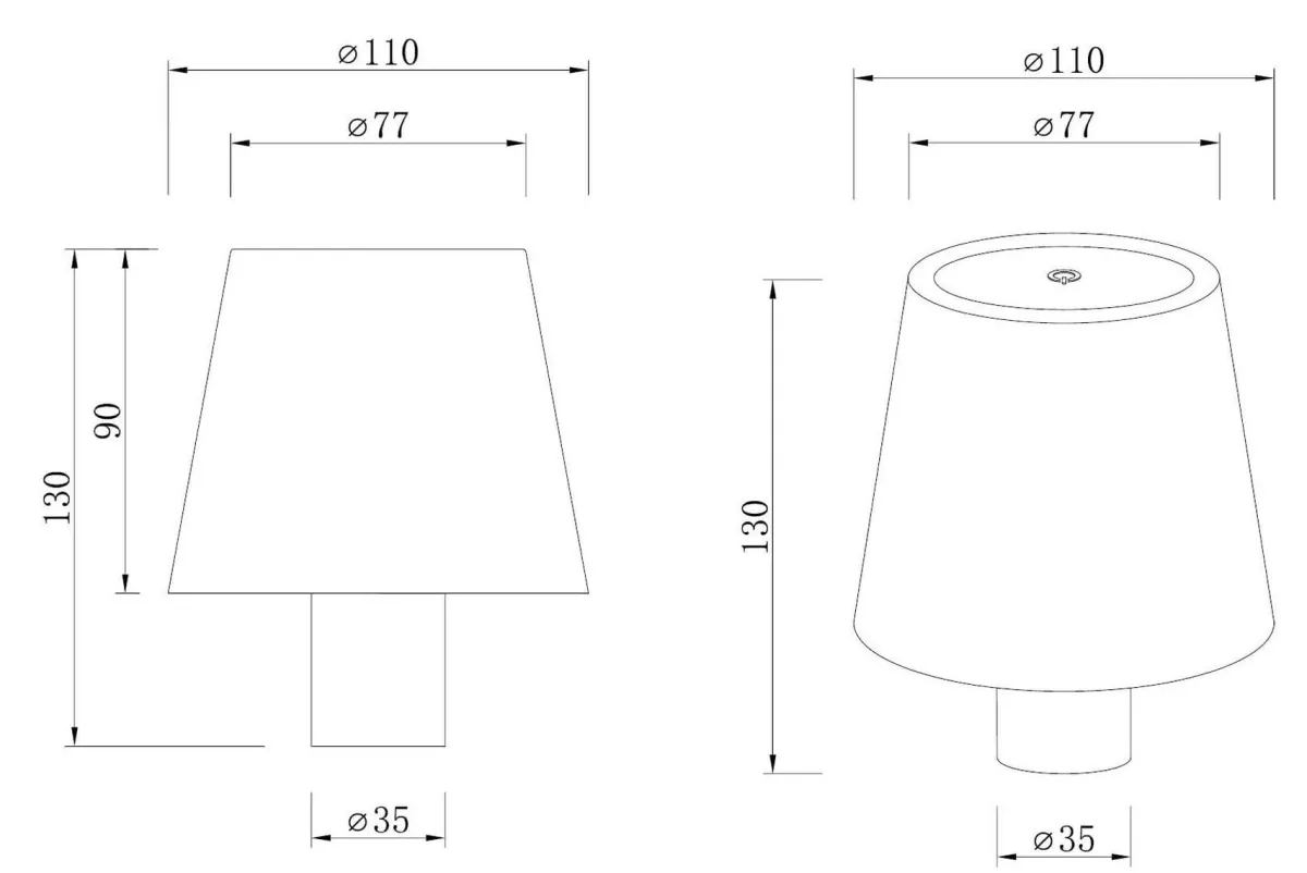 Oppladbar bordlampe. Av/på-touchknapp med dimmefunksjon. Velg mellom 2700K, 4350K og 6000K fargetemperatur.