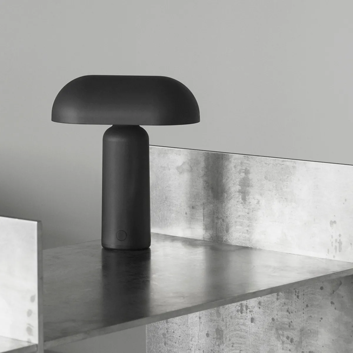 på en solid, avrundet base, som begge er laget av ABS-plast. En hvit underskjem i akryl sørger for en behagelig og jevn glød. En bunnring av silikon gjør at lampen står trygt. Porta kommer med en permanent integrert, oppladbar, lavenergi LED-lyskilde med 3-stegs-dimming: 100 %, 70 % og 40 % og en batterilevetid på henholdsvis 8 timer, 24 timer og 90 timer. Lampen leveres med USB-ladekabel med en lengde på 1 meter. Lampen finnes i hvit, grå og sort.
