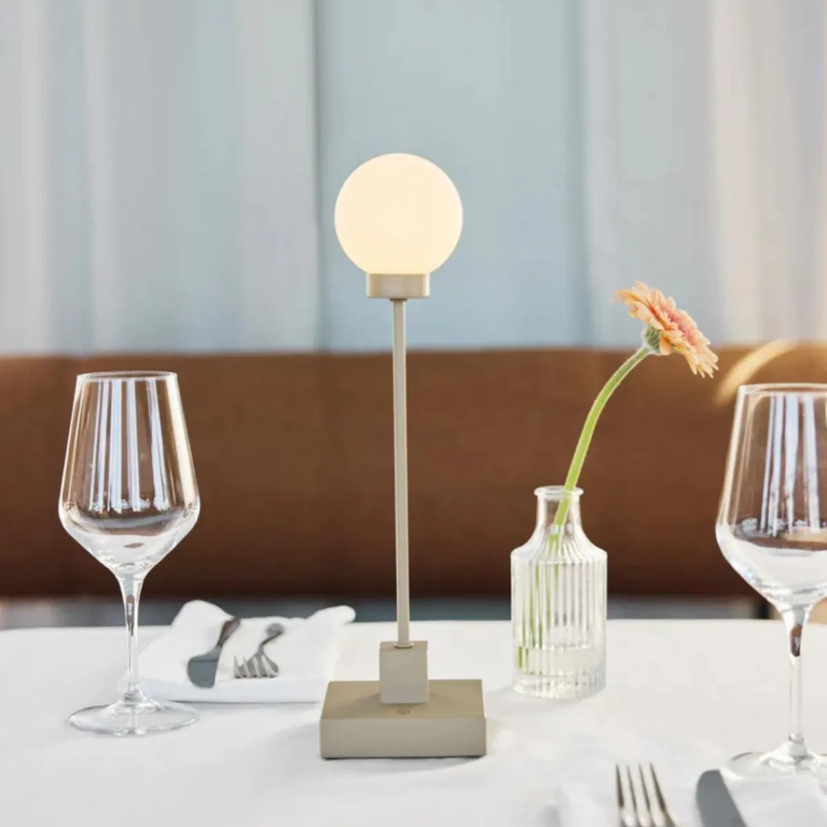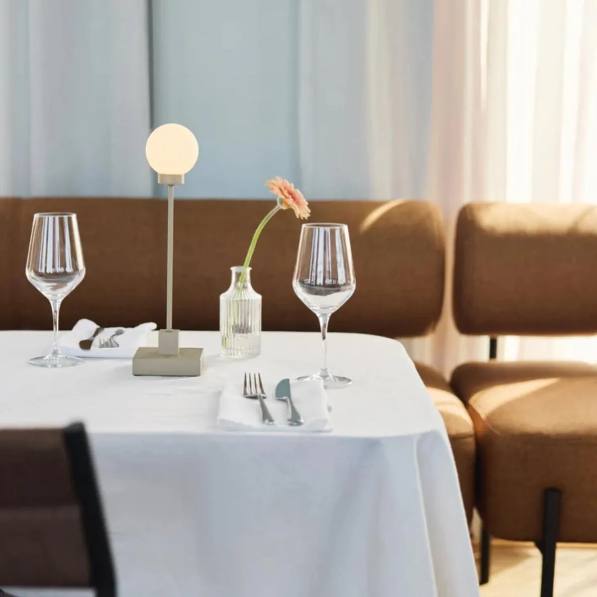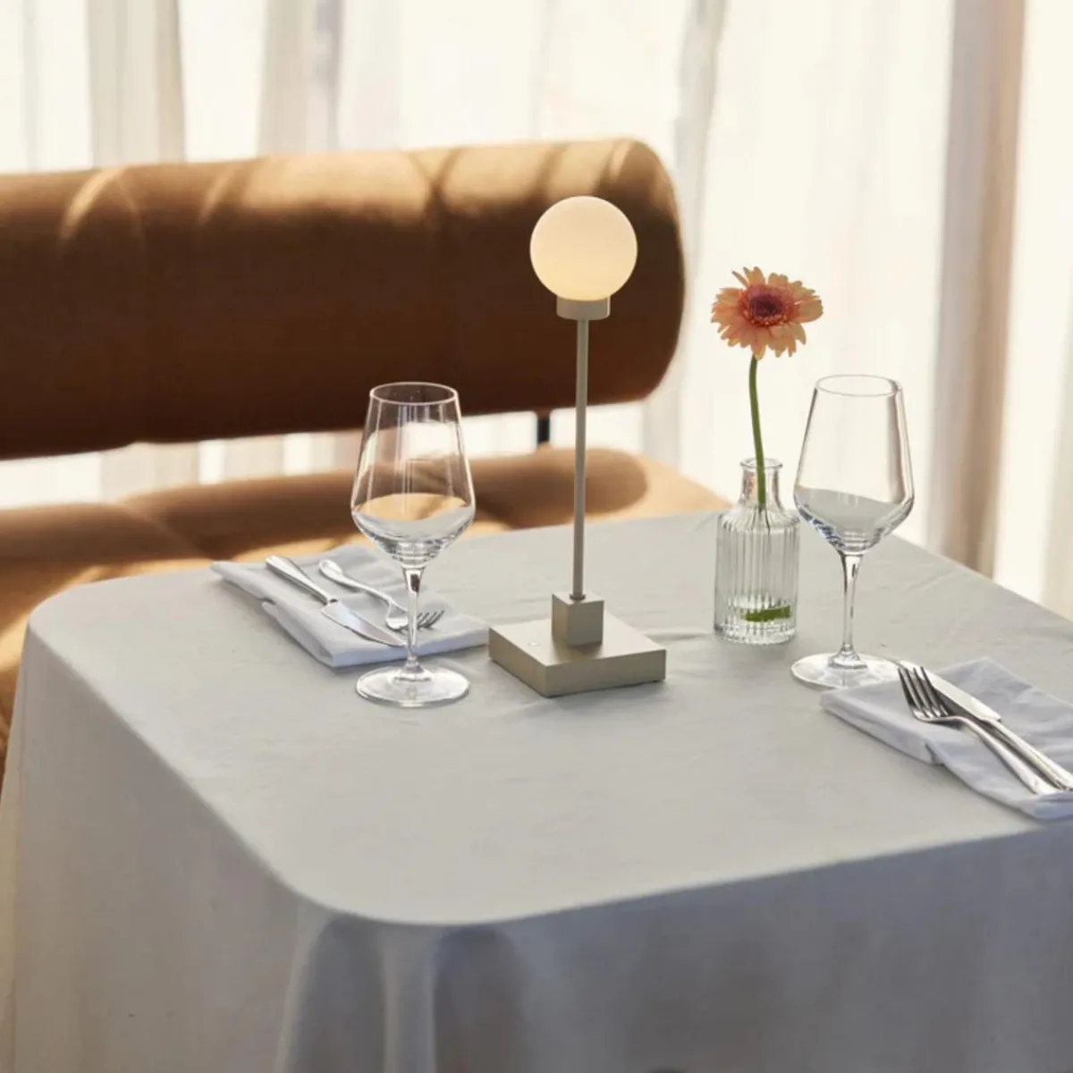 Litt mindre enn den klassiske originalen, er Snowball Portable bordlampe perfekt for å skape stemning i intime omgivelser. Den egner seg ypperlig til restaurantbord, lounger, verandaer eller spiseområder – og gir stemningsfull belysning med full frihet. Vakker, trådløs og tilpasningsdyktig.