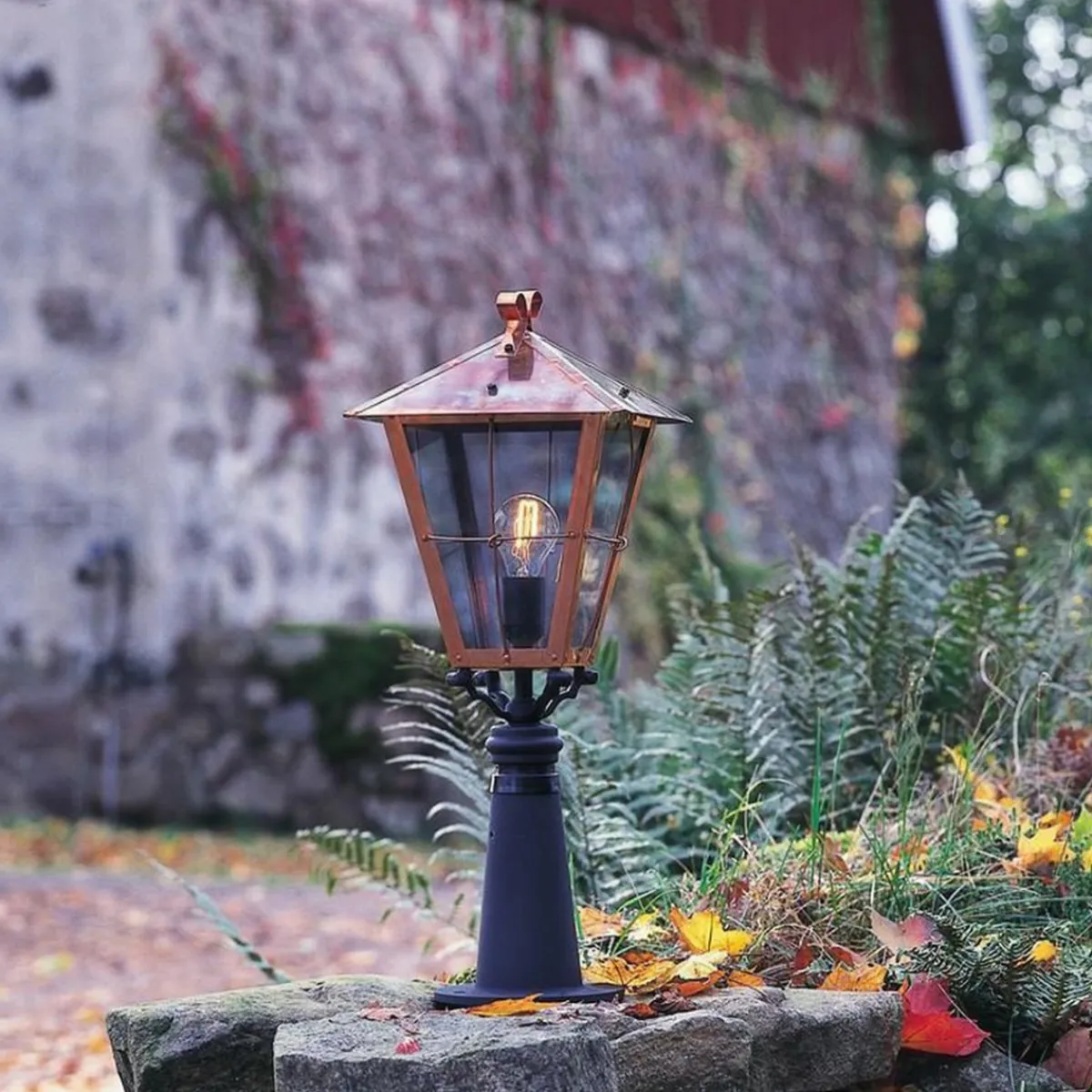 Fenix er en flott og klassisk lampeserie i kobber. Utelampen har røkfarget glass. Kobberet vil med tiden matte seg ned og deretter få det karakteristiske, rustikke utseende vi gjerne vil ha frem når vi velger en slik lampe. Lampen fortjener en pen lyskilde.