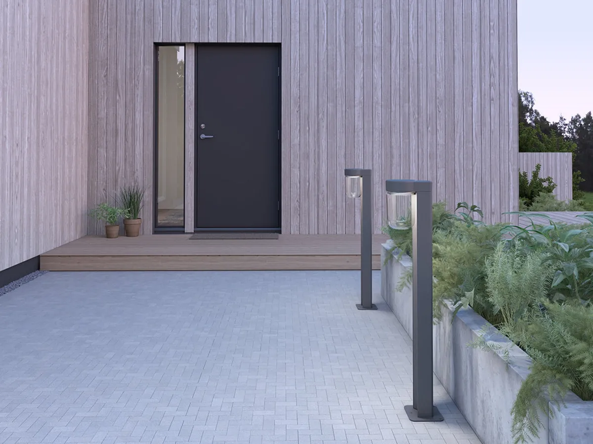 Moon er en moderne utelampe serie, som blant annet finnes som vegglampe og pullert.