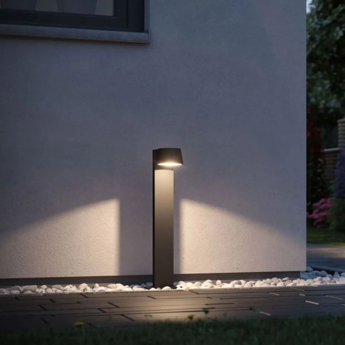 Capea utendørs pullert lys med en effekt på 6 watt skaper attraktive lyseffekter og gir økt sikkerhet i uteområder. Innkjørsler og stier er jevnt opplyst for større sikkerhet. Armaturen, med en behagelig lysfarge på 3000 K, er garantert vanntett og rustfri, takket være beskyttelsesklasse IP44. Den kan også festes til faste overflater ved hjelp av det medfølgende festesettet.