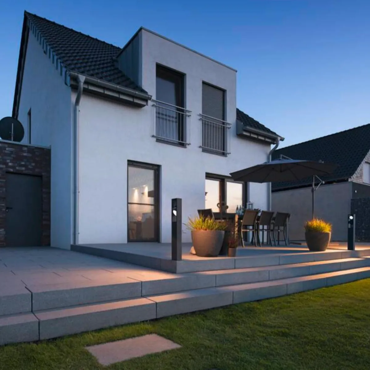En vellykket og elegang design i en rektangulær aluminiumramme: De populære utendørs lmapene i ESKINA-serien gir nå designalternativet FRAME enda flere bruksområder. Derfor passer den stilige, antrasittfargede ESKINA FRAME i ethvert utemiljø. De dreibare armaturhodene gir en fleksibel justerbar lysåpning. Og takket være den høye IP-beskyttelsesklassen 65, er ESKINA også beskyttet optimalt mot vind og vær. I tillegg kan man enkelt velge lysfarge (3000/4000 K) via CCT-bryteren før monteringen. Den enkle installasjonen blir kun en formalitet.