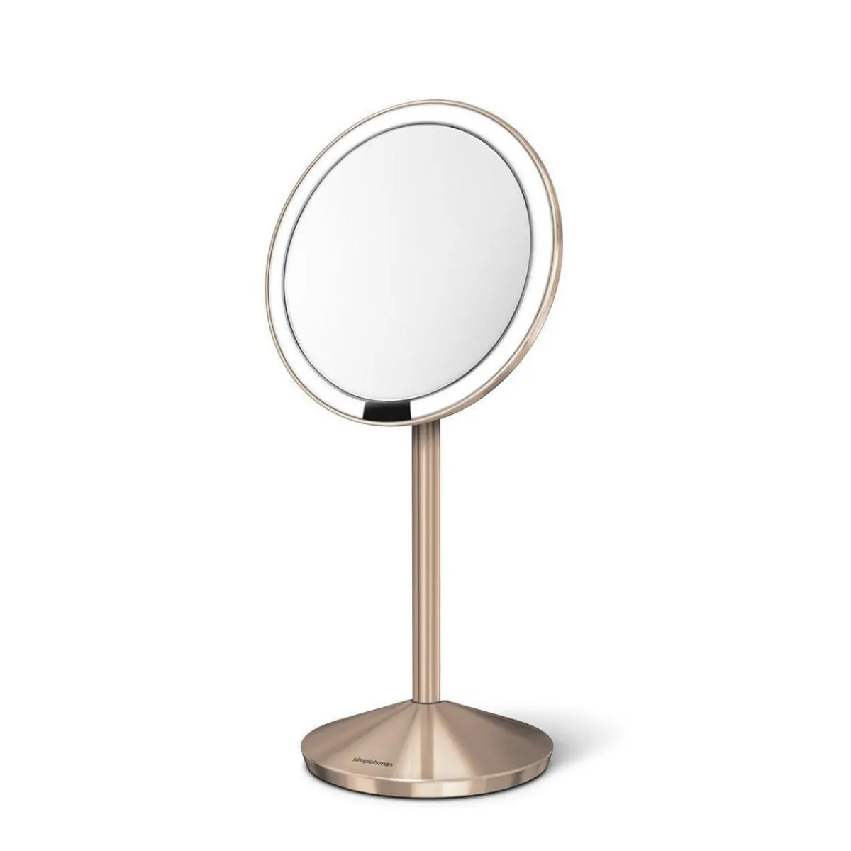 simplehuman`s sensorspeil lyser automatisk opp når ditt ansikt nærmer seg speilet. Med en fargegjengivelsesindeks (CRI) på 90, klarer speilets “tru-lux” lyssystem å gjenspeile hele fargespekteret til naturlig sollys, slik at du vet når sminken din er farge-korrekt og feilfri. Og i motsetning til tradisjonelle sminkespeil med vanlige pærer, vil våre lengevarende LED pærer ikke brenne ut eller avta i styrke selv etter mange år. Speilet kan brettes flatt ned og oppbevares enkelt i det medfølgende reiseetuiet. Du lader den enkelt med den medfølgende USB-ledningen, og en ladning varer opp til 5 uker.