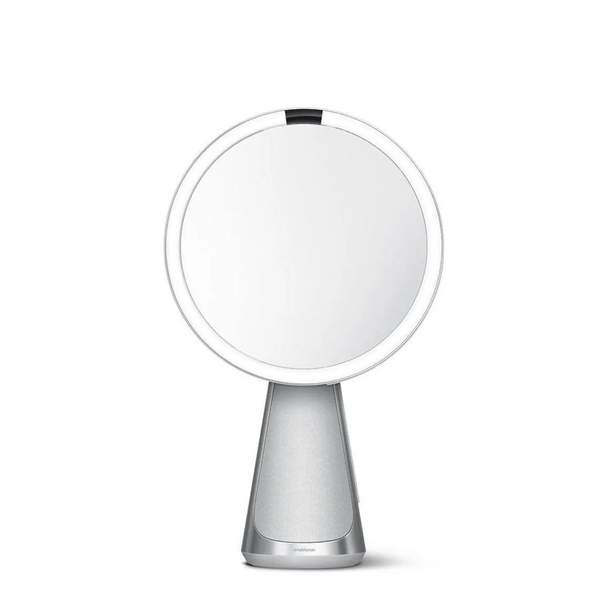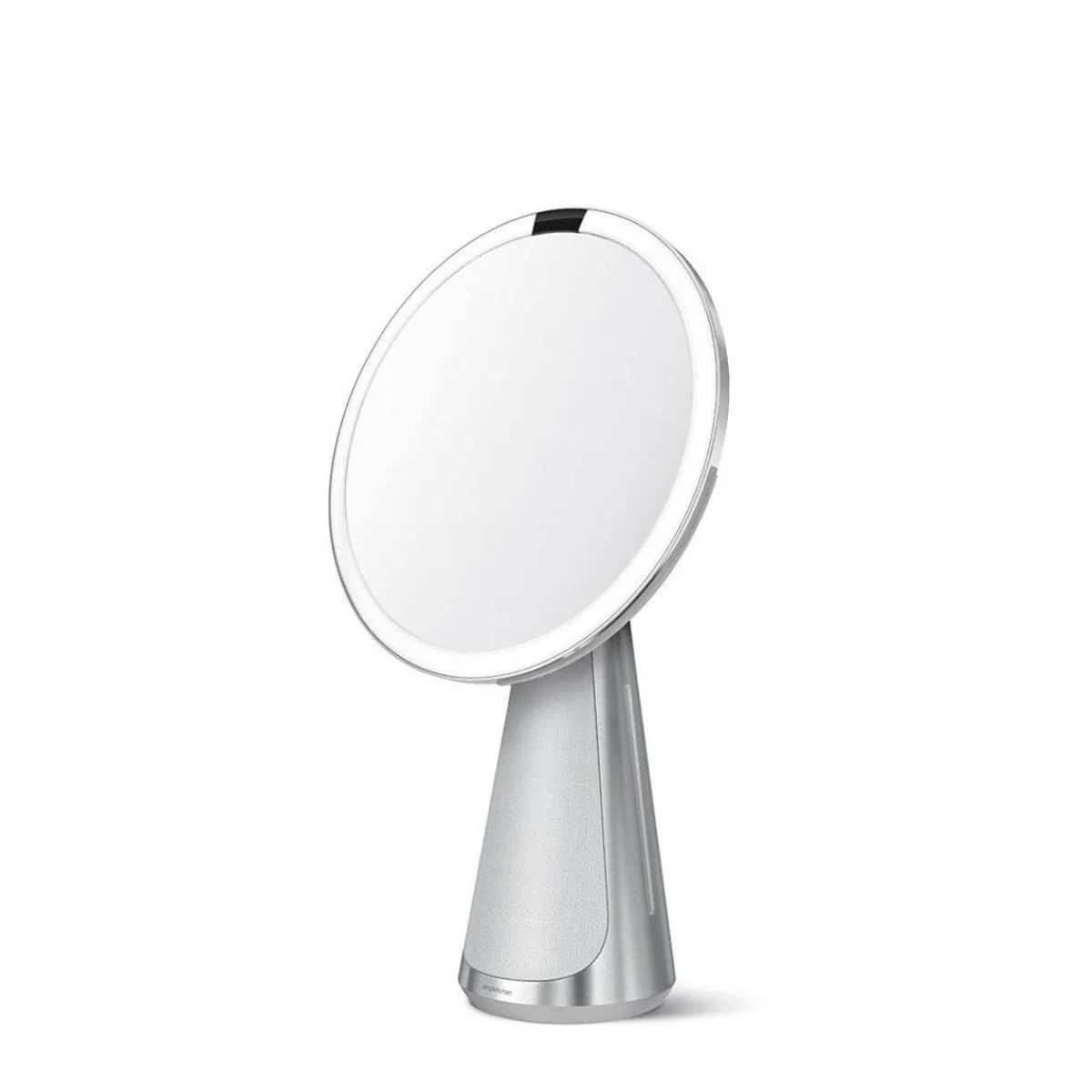 Speilet tru-lux lyssystem, som simulerer naturlig sollys, slik at du alltid vil vite når sminken din er fargekorrekt og feilfri. Bruk lysstyringslinjen til å endre lysstyrkenivået eller speile deg i et mykere lys. Last ned appen Simplehuman Mirror for å justere lydtoner, få tilgang til forhåndsinnstillinger for lys, eller slå på smarte funksjoner som nattlysmodus.