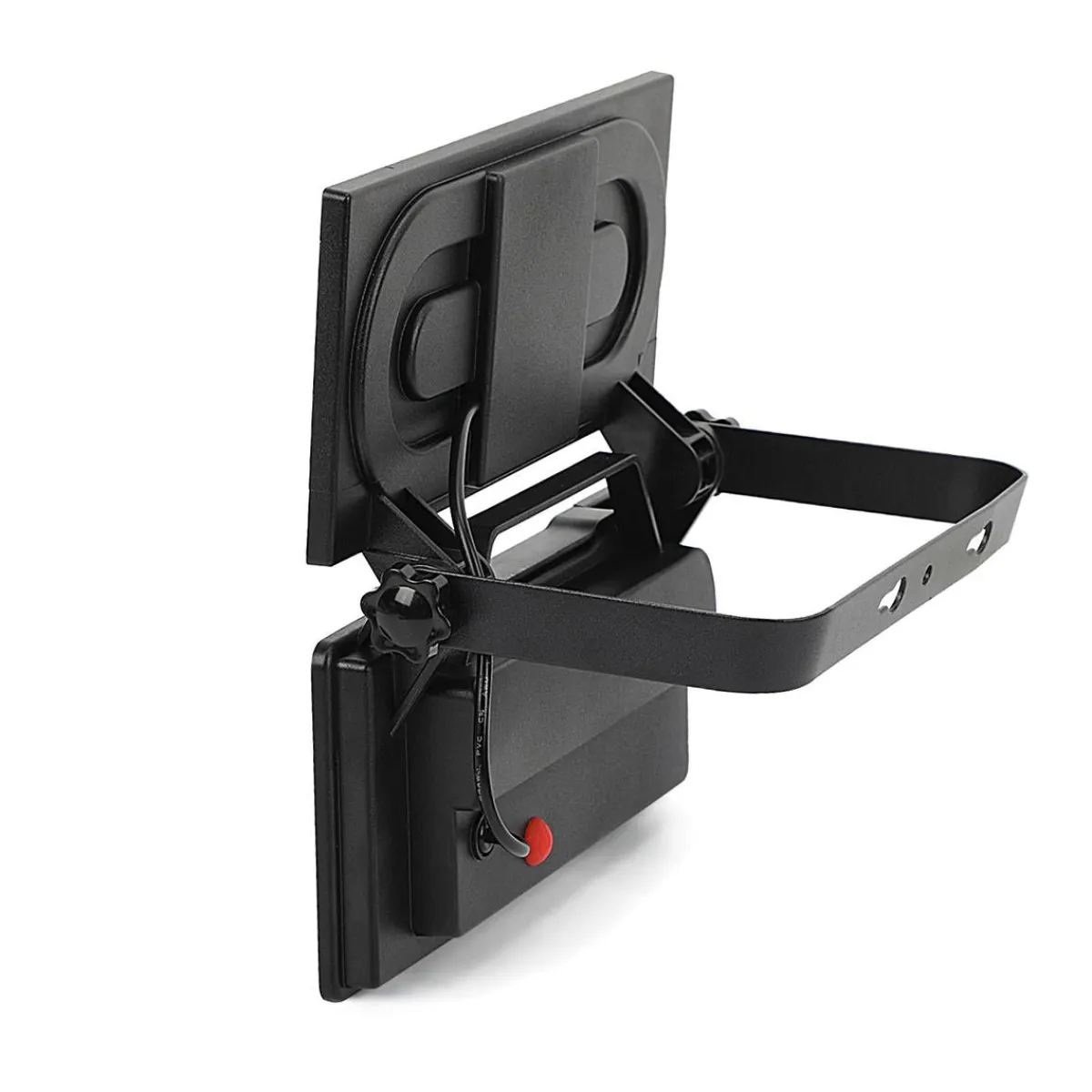 Oppladbar lampe med solcelle og bevegelsessensor. Lyset kan tiltes og solcellepanelet er justerbart. Kan monteres fast til vegg, men også bæres med seg, og benyttes som et frittstående lys.
