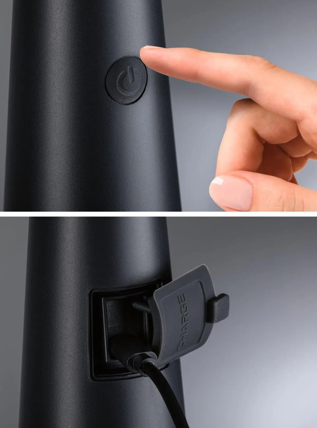 Soala mobile solcellebordsarmatur kombinerer bærekraft og fleksibilitet med et attraktivt design. Denne armaturen setter nye standarder når det kommer til miljøbevissthet, og imponerer dobbelt med sin bærekraft. Mens høykvalitetsmaterialet til armaturen består av over 60 % resirkulert plast, sikrer det integrerte solcellepanelet effektivt energiforbruk for å spare ressurser. I tillegg til det utskiftbare batteriet gir den praktiske USB-C-tilkoblingen ekstra fleksibilitet, noe som betyr at solcellebordarmaturen kan lades hvor som helst. Den antrasittfargede bordarmaturen Soala er et ekte blikkfang både innendørs og utendørs. Enten for å skape et avslappet lesehjørne i stuen eller en stemningsfull atmosfære på terrassen – med sin lyse farge på 2700K, skaper den en behagelig varmhvit lysstemning i alle rom. Armaturen kan dimmes i 3 trinn etter behov, slik at den kan tilpasses individuelle preferanser. Takket være beskyttelsesgraden IP44 er den mobile solcellebordarmaturen værbestandig og kan brukes utendørs uten problemer.