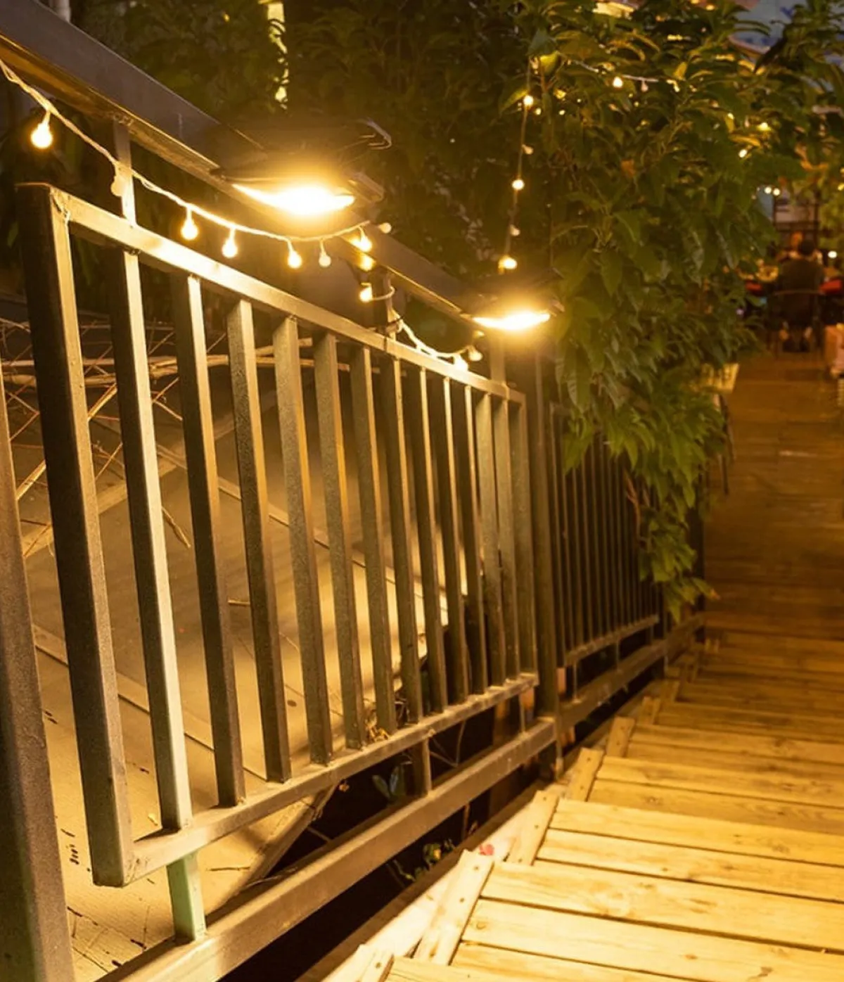 Lampen kan monteres på rekkverk eller andre lignende steder, hvor den festes med fjær/klemmesystem. Den kan også monteres direkte til vegg (veggfeste inkl.).