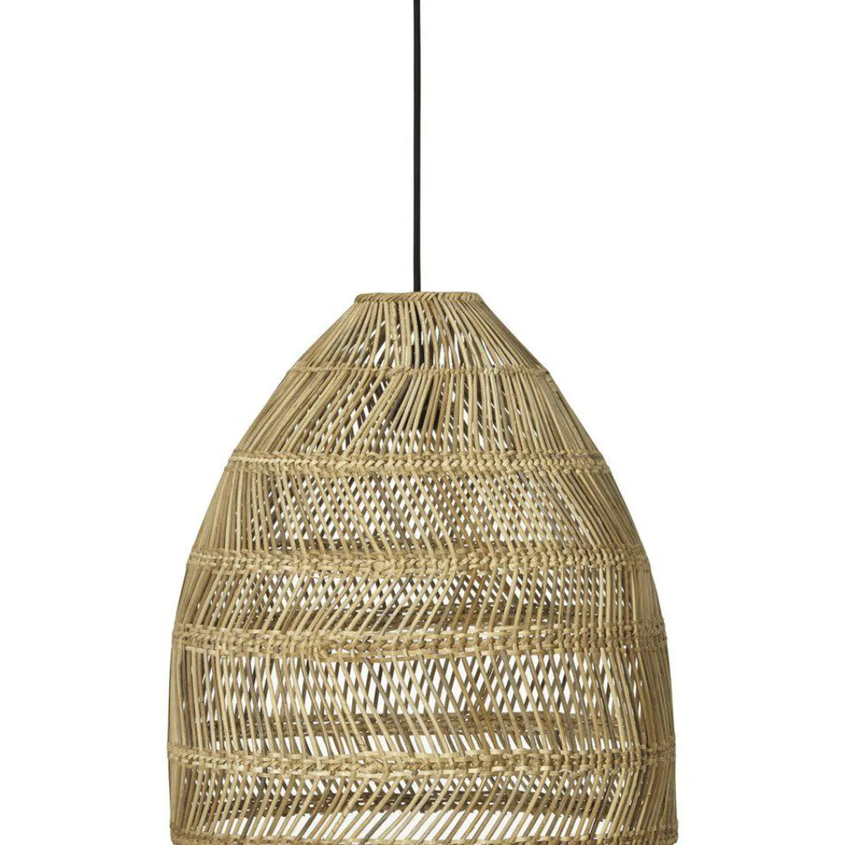 Maja takskjerm i en vakker vridd rotting. Passer like godt utendørs under tak, i drivhus og vinterhager som innendørs Husk at det er et naturmateriale og at vær og vind kan påvirke utseendet. Takskjermen selges sammen med Flex out lampeoppheng. 2,5m lampeoppheng IP44 godkjent for utendørs bruk som ligger med i pakken.