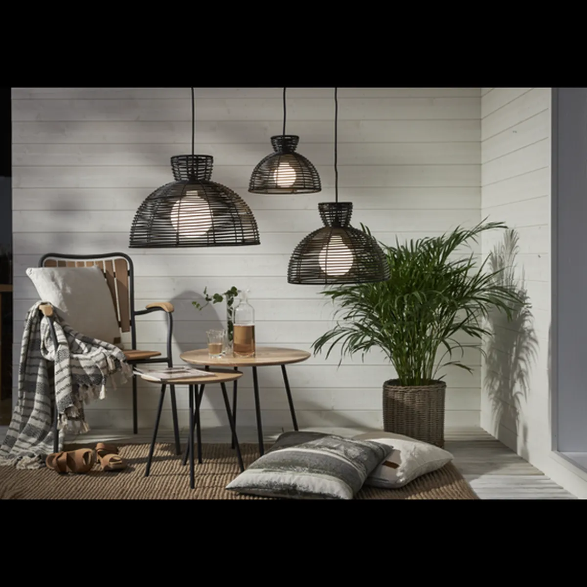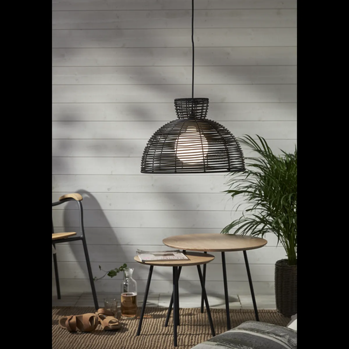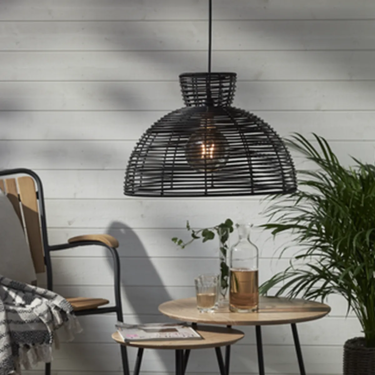 Sort lampeskjerm i kunstrotting for utendørs bruk