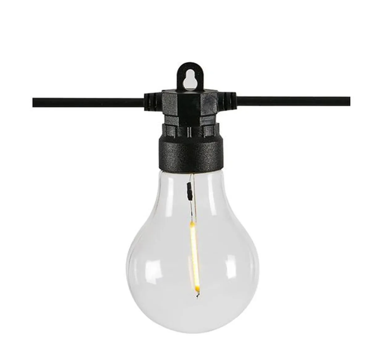 Lysslynge med 10 lys. IP44 godkjent for utendørsbruk. 25 cm in- og utgående kabel i pvc, for mulighet for viderekoble. Transformator selger separat.