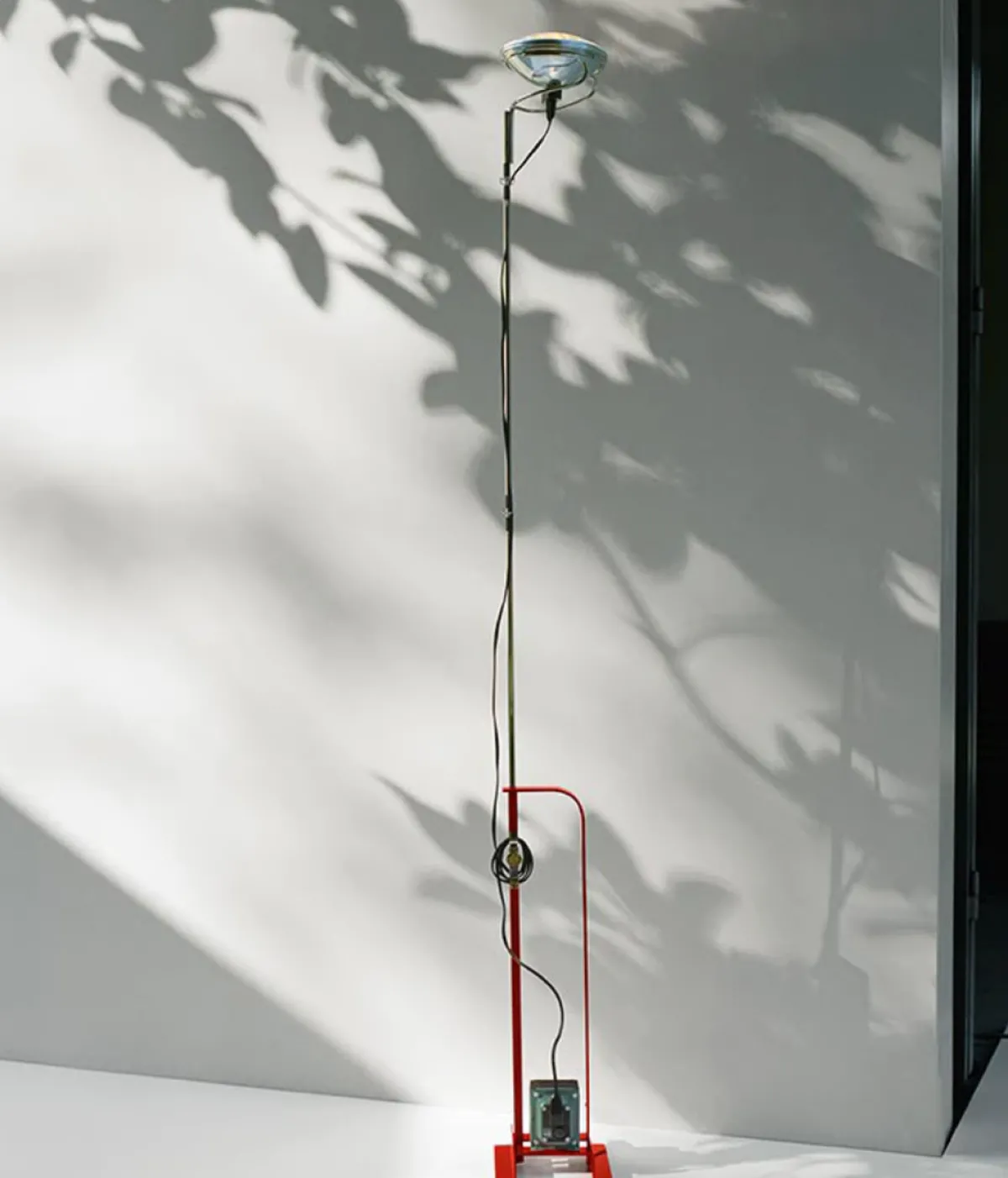 Toio gulvlampe gir indirekte belysning og har høydejusterbar stamme med teleskophode.. Lampen og foten er laget av stål, malt i en rekke farger. På kabelen er det den elektroniske dimmeren som tillater regulering av lysstyrken. 2,47 meter ledning.