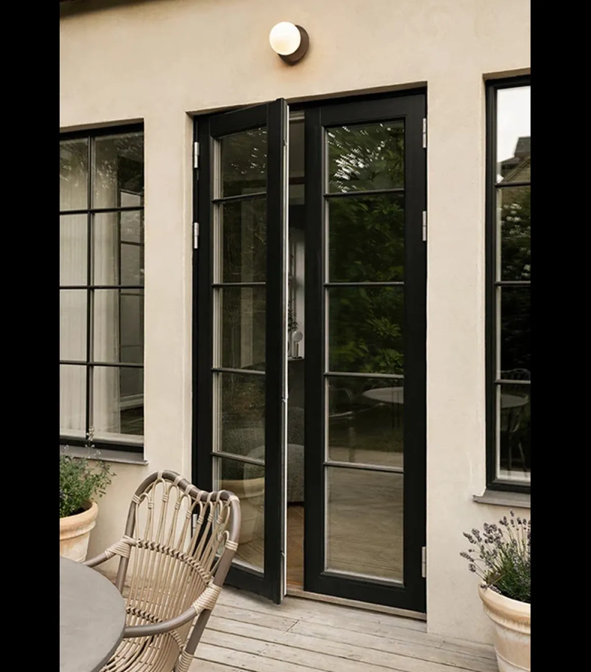 Liila 1 Outdoor er en vegg- og taklampe som skal monteres på fasadene til hjemmet ditt, enten ved inngangsdøren eller i taket på verandaen. Liila 1 Outdoor består av en rund metallplate i sort pulverlakk og en munnblåst glasskule i klart glass. Det organiske designet og kontrastmaterialene skaper en klassisk og tidløs utendørsbelysning.