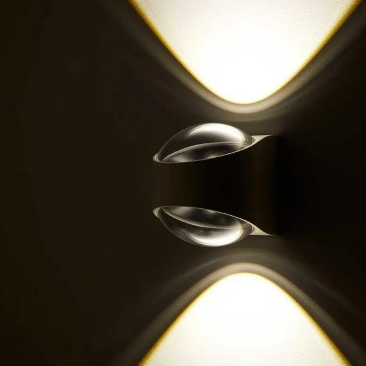 Saga vegglampe i svart har en vakker innovativ form som en innsatt perle inspirert av smykkedesign. Den avgir et fantastisk lys oppover og nedover, gir et fint lysspill på veggen og kan gi god belysning inne i stuen, kjøkkenet og på badet, så vel som ute på fasaden, da den har en IP65-kapslingsgrad som også gjør den ideell for utendørs bruk. Lampen har en optisk linse og glanslinse som sørger for at LED-lyset er klart og lysspredningen er 80 °.