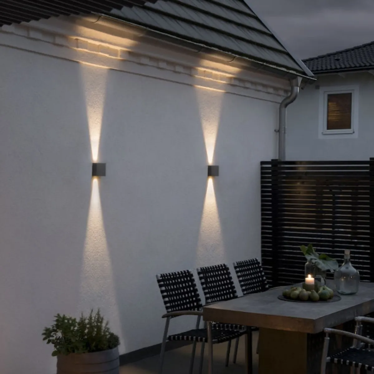 Slank og stilrent utelampe hvor du selv kan justere spredningsvinkelen på lyset både oppe og nede.