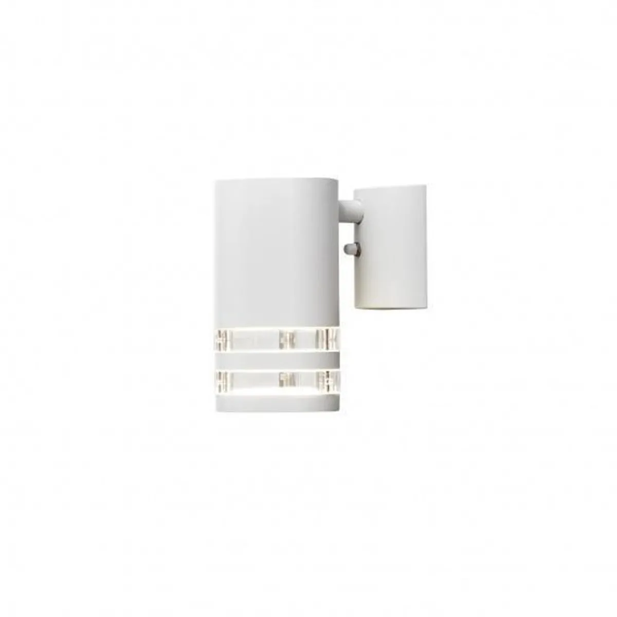 Hvit moderne vegglampe som vender lyset ned med rene linjer.