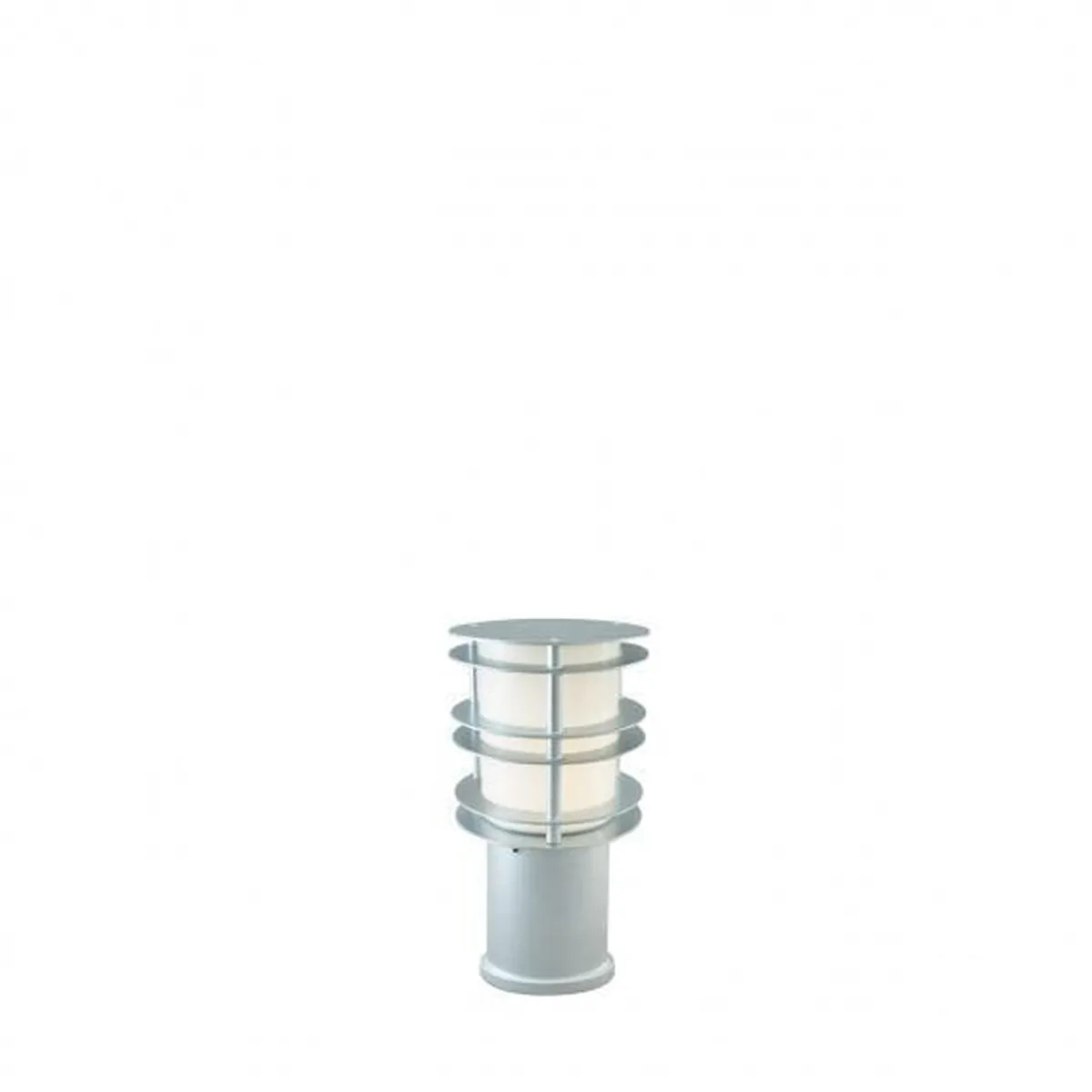 Pullert i moderne design med opalhvitt glass i polykarbonat. Lampen finnes i tre ulike høyder og i fargene galvanisert stål og sort. Lampen er en del av en serie som inneholder vegglamper i to ulike størrelser, portstolper i to ulike størrelser, blomsterstolpe, teleskopstolper med 1 til 3 lyktehoder, samt pullerter i to ulike høyder. Alle utgaver leveres med klar e polykarbonat deksel.